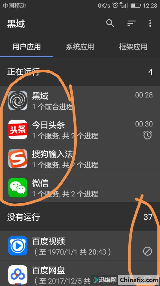| 安卓手机运用装多以后,系统就会变得不流畅,这主要是因为使用程序会在后台悄悄运行,占用大量的手机运行内存,运行内存被大量占用就会导致手机卡慢不流畅。安卓手机系统运行慢如何维修呢?今天就来教大家怎样杜绝程序后台运行,让Android系统运行更流畅。 首先在浏览器搜索“酷安app”下载安装到手机: 运用装的多,安卓手机系统运行慢如何维修 图1 安装完成后打开“酷安”,在使用搜索栏搜索“黑域”下载安装,(黑域这个程序在其它使用市场好像没有下载的,所以要先安装“酷安app”) 运用装的多,安卓手机系统运行慢如何维修 图2 安装完成后打开“黑域”,黑域程序有两种开启方式:1.手机已经获得最高权限(ROOT)的,可以运用ROOT开启。2.手机不想ROOT的可以连接电脑用电脑命令行开启(程序中有开启向导)。建议运用第一种,第二种开启方式在手机关机或重新启动后都要重新连接电脑在命令行开启,太麻烦了。我的手机已经ROOT了,所以选择程序主界面右下角的ROOT开启“黑域”程序: 运用装的多,安卓手机系统运行慢如何维修 图3在弹出的“超级用户授权申请”界面中点击“允许”,进入“黑域”程序 运用装的多,安卓手机系统运行慢如何维修 图4开启“黑域”主程序后,点击界面右上角的“三个点”图标,选择“设置”打开设置界面: 运用装的多,安卓手机系统运行慢如何维修 图5讲入设置界面后,下图两项可以根据自己的需要进行设置: 运用装的多,安卓手机系统运行慢如何维修 图6 “黑域方式”我设置的是“只强行停止,不待机”: 运用装的多,安卓手机系统运行慢如何维修 图7 “后台使用超时”我设置的是1分钟: 运用装的多,安卓手机系统运行慢如何维修 图8下图的设置是要不要显示“所有使用”以及“系统的核心框架使用”,我是都开启了的: 运用装的多,安卓手机系统运行慢如何维修 图9 设置完成后就回到主界面,根据自己的要求选择要黑域的使用程序:点击要黑域的程序,在弹出界面点击“选择/取消选择”: 运用装的多,安卓手机系统运行慢如何维修 图9选中要黑域的程序后,点击界面右上角的黑域图标,如下图: 运用装的多,安卓手机系统运行慢如何维修 图10 按以上步骤设置完所有需要黑域的程序就可以了,下面来看看我设置,在“用户使用”中,我只保留了常用的四项,(注意:如微信,QQ等不要黑域了,要不收不到信息提醒),其它有37个使用是已经黑域了的,如下图: 运用装的多,安卓手机系统运行慢如何维修 图11 在“系统使用”中,我保留了必要的几项,(“媒体储存”不要黑域了,要不然会引起“相机”程序闪退,“联系人储存”和“用户词典”黑域了会引起“拨号”打电话程序闪退),其它的有23项都黑域了 运用装的多,安卓手机系统运行慢如何维修 图12 如下图:在“框架使用”中,有几项是无法黑域的: 运用装的多,安卓手机系统运行慢如何维修 图13 其它的框架使用除了“时钟”和“打包安装程序”这两个外都可以黑掉,(“打包安装程序”会引起无法安装使用,“时钟”会引起闹钟不闹),其它的我用了这么长时间还没有发现问题: 运用装的多,安卓手机系统运行慢如何维修 图14来看看我运用“黑域”后的运行内存占用情况: 运用装的多,安卓手机系统运行慢如何维修 图15 好了,方式就所有介绍完了,大家如果在黑域后手机出现某程序闪退的问题,可以在黑域程序中修改过来就好了! 手机运行慢如何维修专题:https://www.jdwx.cn/zt/318385-1.html |