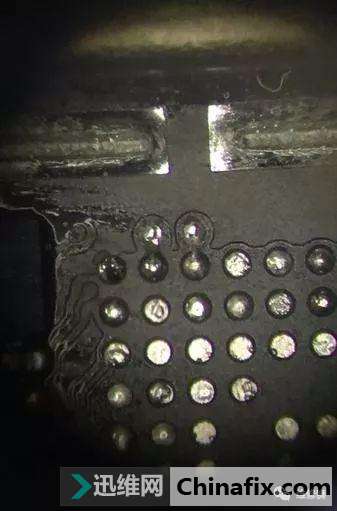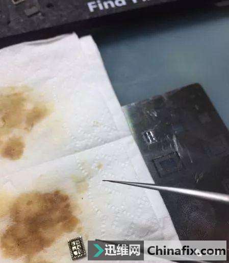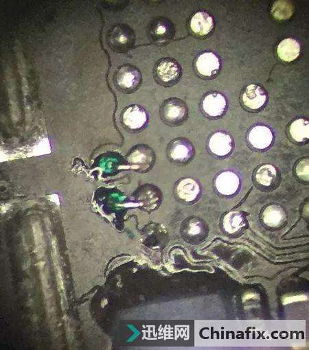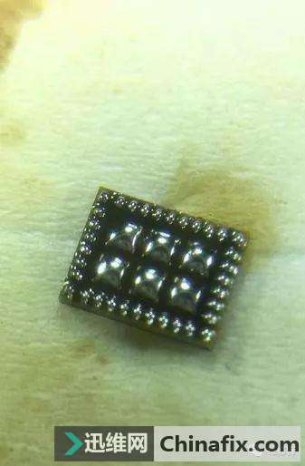 | 机器型号:iPhone6P 故障表现为:输入* 06 不显示串号 维修过程: 拆出主板上夹具,先拆掉屏蔽罩铁盖将基带处理器烘下来。虽然拆下芯片后没有掉点,但因这2点层板内线路容易断,所以还是要先补线! 上显微镜,刮开相连接的点位。 上锡。 补线,上绿油。 然后基带处理器上锡,焊上基带。开机测验,但情况一样,再输入*#06#还是没有串号,是我没有焊好吗?但应该还不至于那么矬,再处理一次。 将基带处理器再拆下来,重新处理,再装回。果然,*#06#依然没有任何反应!接下来还是好好地查线路吧。 先刮开RFFE总线的4个测验点,量一下对地值。经测量发现,很显著在RFFE2部分,出现不稳定的跳动。没别的方式,相关的芯片一个一个拆,拆到正常吧! 先拆功放芯片。主板彩图: 但要将新的功放芯片植锡时,发现植锡钢网竟然没有功放的植孔。只好找一个孔位大小差不多的,做手动植珠。先在钢网上找孔位差不多的,上锡制作锡珠。 取下锡珠,一颗一颗焊上IC,幸好没很多点位,不然又是个耗时间的苦力活。 所有脚位植锡成功,加点焊油对位。 开机测验,终于搞定,久违的*#06#出现串号了。串号图: |