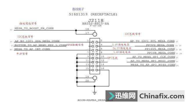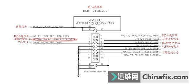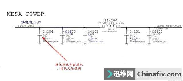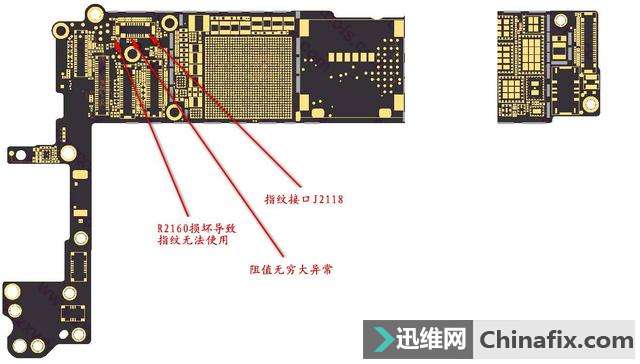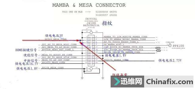 | 案例一:6P换屏后导致指纹不能录入 先在图纸元件分布图找到指纹接口为J2118,如图所示: 6P换屏后导致指纹不能录入 6P换屏后导致指纹不能录入 6P换屏后导致指纹不能录入 测量J2118对地阻值,对照正常主板阻值发现2脚(I2C总线信号)对地阻值异常,正常主板阻值为无穷大(1),测得问题主板为0,果断摘掉FL2179(上图圈所示)后试机正常,指纹可以运用了。 案例二:6返回键不能运用 根据原理图直接测量J2118指纹内联座第3脚,发现阻值无穷大,看原理图显著阻值不对,然后测通路中的R2160电阻一端无穷大,直接更换(这个电阻为0Ω可以短接)问题解除。如图所示: 案例三:6S开机漏电指纹无法运用 根据原理图直接测量J4100(指纹内联座)供电和对地阻值,发现第3脚(PP3V0_MESA_CONN)阻值和供电异常,很据原理图测通路中文件发现C4104一端接地的电容破坏,直接更换C4104问题解除。如图所示: iphone6指纹无法录入专题:https://www.jdwx.cn/zt/24049-1.html |