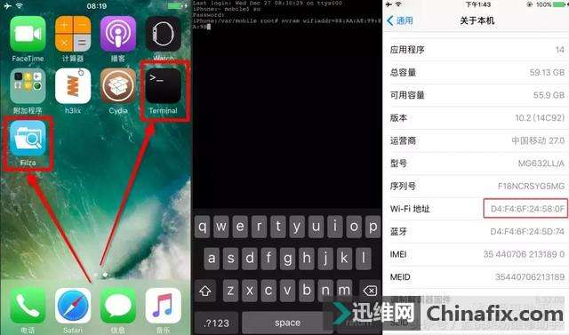 | 现在32位设备已经支持苹果iOS 10-10.3.3越狱,也就意味着旧设备又可以越狱后进行降级了,下面这个教程就是比较简单的办法直接将设备从苹果iOS10.3.3降级苹果iOS8.4.1系统。 支持设备:iPhone5、iPad4。 不支持iPhone5C,因为iPhone5c的初始版本是苹果iOS7系统。无法运用这个方式。 第一步: 先将设备越狱,点击查看越狱教程,然后打开Cydia安装openssh和MTerminal,还有Filza。 第二步:打开Filza,找到路径:/System/Library/CoreServices下的SystemVersion.plist打开,把10.3.3改成6.1.3,把14G60改成10B329,然后保存。 第三步:打开MTerminal,输入命令su回车,输入密码alpine回车,再输入nvram wifiaddr=XX:XX:XX:XX:XX:XX回车(这个MAC地址为6组16进制值,可用的字符:0--9,A--F,有效范围内自己搭配,例如nvram wifiaddr=88:AA:A8:99:8A:9B)。 注意:如果修改的WIFI地址不是有效的,激活的时候连不了WIFI只能用iTunes或者爱思激活,可照着上面的地址直收到故障机改,也可修改自己无线WiFi地址的某一位。 第四步:修改完之后返回桌面,重新启动手机。(不重新启动是检测不到OTA更新的)重新启动后直接打开手机的设置--通用--软件更新,OTA更新8.4.1即可。更新完后,激活进入桌面。信号也出来了,打开设置看到WIFI地址是降级前改的那个。 注意:降级后别把WIFI地址改回去,不然重新启动后会激活不了,如果无法激活只能刷回苹果iOS 10.3.3重新再尝试降级。激活后为了以防奇葩的问题出现,建议恢复出厂一次(设置--通用--还原--抹掉所有内容和设置) |