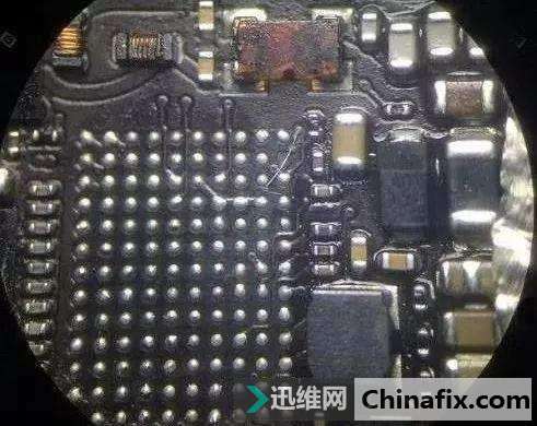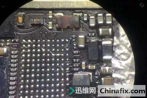 | 接收到其他维修同行的一台iPhone 6Plus,触摸不管用,无法正常运用。开机后问题跟客户描述的一致,准备拆解。 iPhone 6 Plus 触摸不管用检修思路案例 图 iPhone 6 Plus 触摸不管用检修思路案例 图 拆出主板,启动维修模式。 iPhone 6 Plus 触摸不管用检修思路案例 图 拆除触摸芯片后,对它的M1脚进行补点。 iPhone 6 Plus 触摸不管用检修思路案例 图 焊点位置涂好绿油后,进行紫外线固化。 iPhone 6 Plus 触摸不管用检修思路案例 图 与芯片接触的末端绕圈,使芯片和主板可靠连接。 iPhone 6 Plus 触摸不管用检修思路案例 图 更换全新触摸IC。 iPhone 6 Plus 触摸不管用检修思路案例 图 通电测验开机正常后,贴好屏蔽纸。 iPhone 6 Plus 触摸不管用检修思路案例 图 装入后壳中,拧好整机螺丝,测验无灰条出现,维修结束。 iPhone 6 Plus 触摸不管用检修思路案例 图 问题解析:此类问题高发于UMT主板,此类主板稳定性相对于其它工厂的主板较差,在受外力的情况下,主板破坏率较高。问题原因是由于A8处理器(处理器)E3脚位到触摸IC(U2402)M1脚位之间断路(外力造成板层断线),造成触摸IC到SoC同步信号缺失,从而导致触摸无法使用。 |