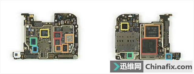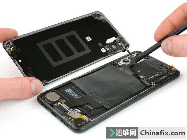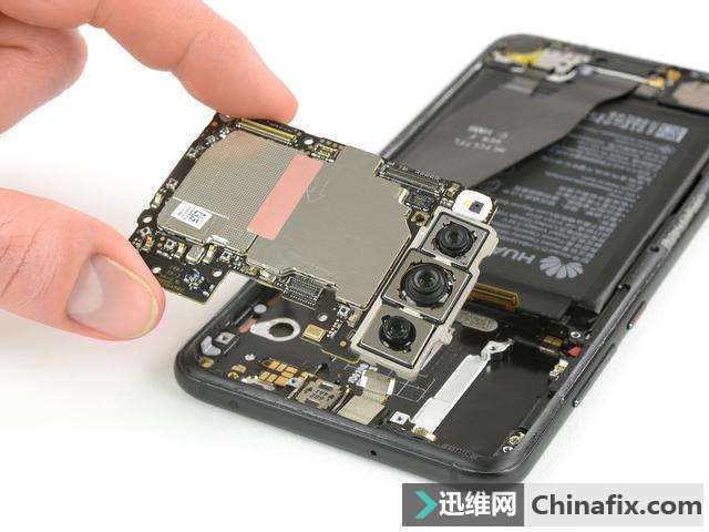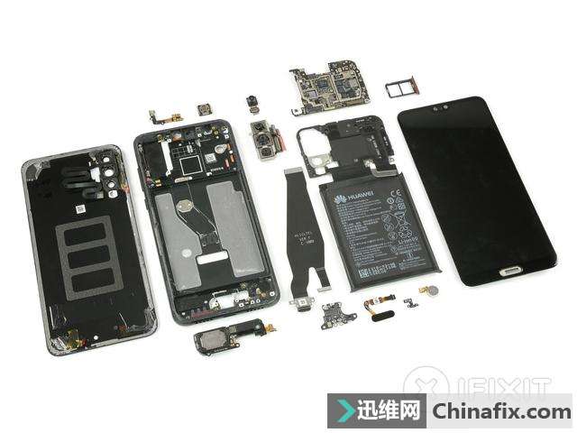 | 在先后拆解了智能音箱 HomePod,三星的 Galaxy S9 以及 2018 款 iPad 之后,小编又把「魔爪」伸向了背部配备「徕卡三摄」的华为 P20 Pro拆解上。 是的,华为 P20 Pro 无疑是最近热烈讨论的明星机型之一,无论是既带「刘海儿」又带 Home 键的外观,还是背部渐变色和「徕卡三摄」的规划,都让不少人对华为今年这款 P 系列旗舰印象深刻。 其中,背面那组由 4000 万像素主摄领衔的「徕卡三摄」镜头,更是让华为 P20 Pro 一跃成为 DxOMark 排行榜上的第一名。因此,可能不少人都希望知道,这款在摄像头规划上大胆新奇的手机,其内部构造到底有哪些过人之处。 下面,我们就跟随着小编的视角,深入地了解一下这款旗舰。 华为 P20 Pro 基本配置: 屏幕:6.1 英寸 OLED 全面屏 核心:海思 Kirin 970 运行内存:6GB 储存:64GB /128GB / 256GB 前置:2400 万像素(F/2.0) 后置:4000 万像素(主摄,F/1.8) / 2000 万像素(黑白,F/1.6) / 800 万像素(长焦,F/2.4) 电池:4000mAh 系统:EMUI 8.1 (基于 Android 8.1 Oreo) 其他:IP67 防水防尘 / 面部识别 / 指纹识别技术 / Super Charge 快充技术 背部 3 颗摄像头,竟然都有光学防抖 尽管华为 P20 Pro 是一款支持 IP67 防护等级的手机,但这并没有让整个拆解的过程变得棘手。相反,iFixit 团队还省去了以往需要加热开盖的流程,仅用一个吸盘工具和拨片轻松一刮,就掀开了 P20 Pro 的后盖。 在拧开螺丝、拨开排线、拆开背板后,我们便得以看清那块搭载了「徕卡三摄」和闪光灯的电路板。可以看到,后置的三颗摄像头以及闪光灯被规划为一个模组,排列得相当紧凑。 虽然这是一个「徕卡三摄」的镜头模组,但华为只为其规划了两条排线,4000 万像素的主摄像头和 2000 万像素的黑白摄像头共享一条排线,而另外那颗 800 万像素的长焦摄像头则独享另一条排线。 (从侧面来看,最右的长焦摄像头凸起的高度较大) 其中,那颗 4000 万像素的主摄运用了 1/1.7 英寸的传感器,它比 iPhone X 上 1/2.9 英寸传感器以及三星 Galaxy S9+ 的 1/2.55 英寸的传感器还要更大一些,其 ISO 最高能达到 102400。 更重要的是,通过拆解后发现,无论是那颗 4000 万像素的彩色摄像头,还是那颗看上去「最扁」的黑白摄像头,它们都拥有 OIS 光学防抖功能。 (iFixit 用镊子演示三颗摄像头支持光学防抖的特征) 也就是说,背面三颗摄像头在硬件层面上似乎已经具备了 OIS 光学防抖功能。显然,这与之前华为在发布会上宣称只有 800 万像素长焦摄像头配备 OIS 光学防抖,另外两颗摄像头基于人工智能芯片实现 AI 图像防抖的说法,有一定的出入。 但现在华为并没有对此发表评论,我们也尚不清楚这三颗带光学防抖功能的摄像头是如何工作。实际上,除了三颗带光学防抖的摄像头之外,iFixit 还注意到一个细节,承载相机模组的电路板还连接着后盖上一颗用于激光对焦的传感器,以便让华为 P20 Pro 实现快速对焦。 模块化的零部件规划,还有大容量电池 在整个拆解的过程中,华为 P20 Pro 内部那些模块化的零部件规划,也让人留下了深刻的印象。例如上述的相机模组以及承载它们的电路板、搭载麒麟 970 的小主板、震动电机以及 Type-C 充电接口,都采用了模块化的规划。这样的好处在于,这些零部件一旦破坏,容易通过简单地更换实现修复。 我们先把关心点短暂地放在那块小主板,这上面集成了麒麟 970 核心、镁光 6GB LPDDR4 的运行内存、三星 128 GB 闪存、恩智浦的 NFC 控制器等重要的零部件。 下面是主板上具体的零部件清单: 镁光 6 GB LPDDR4 SDRAM 封装在麒麟(Kirin)970 芯片中 三星 KLUDG4U1EA-B0C1 128 GB V-NAND 闪存 海思 Hi6403-GWCV110 音频 IC 德州仪器 BQ25895 I2C 充电控制模块 恩智浦 55102 PN548 NFC 控制器 海思 Hi6363-GFCV100 射频收发模块 Skyworks 78113-14,78114-61 以及 78117-4A Skyone 前端 LTE 模块 海思 Hi6421-GFCV810 电源管理 IC 赛普拉斯 BCM43596 Wi-Fi 及蓝牙模块 海思 Hi6423-GWCV100 电源管理 IC 华为 P20 Pro 除了部分模块化零部件容易更换之外,电池也相比多数手机更容易拆卸出来。 在拆解过程中, iFixit 发现华为 P20 Pro 的电池并没有运用大量黏性较强的胶水来固定,因此,拆卸电池并不需要运用热风机加热,只需要用一点溶胶剂,就能轻松将电池取出。 说起来,这块电池与之前华为 Mate 10 Pro 那块电池的规格较为接近,其额定的工作电压为 3.82 V,拥有 4000 mAh(相当于 15.28 Wh )的电池容量。 这样的电池规格,远远超过了三星 Galaxy S9+ 13.48 Wh 以及 iPhone X 的 10.35 Wh 的参数,对于提升手机电池续航来说,有一定的帮助。 华为 P20 Pro 比 iPhone X 更难修复 虽然华为 P20 Pro 在内部部分零部件上使用了模块化规划,相对容易更换零部件,但 iFixit 团队依然认为华为 P20 Pro 的可修复性较差,并给它打出了 4 分的「可维修度」评分(总分 10 分,分数越高说明越容易维修)。 这一分数与三星 Galaxy S9/S9+ 相当,但低于 iPhone X 所取得的 6 分。在 iFixit 看来,华为 P20 Pro 的扣分点很大程度是扣在屏幕的拆解上。为了拆卸 P20 Pro 的屏幕,iFixit 需要动用一个 iOpener 加热枕对屏幕部分进行加热,使得屏幕与中框之间的胶水得以融化。 当然,这只是更换屏幕总成时面临的一个挑战,如果是摔碎了外屏,那么拆解起来就更加麻烦了,你还需要再一次用加热的方式来分离内屏和外屏。而这样的分离操作,容易对玻璃面板造成破坏。 正因为如此,当你仅需要更换距离传感器、光线传感器、前置摄像头以及听筒的时候,也需要再攻克拆卸屏幕总成时所遇到的