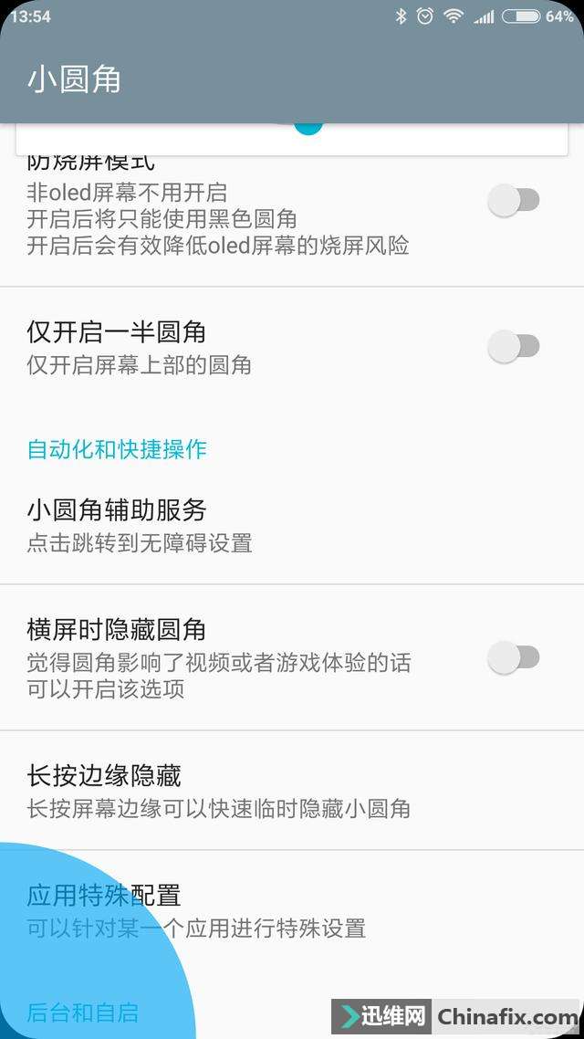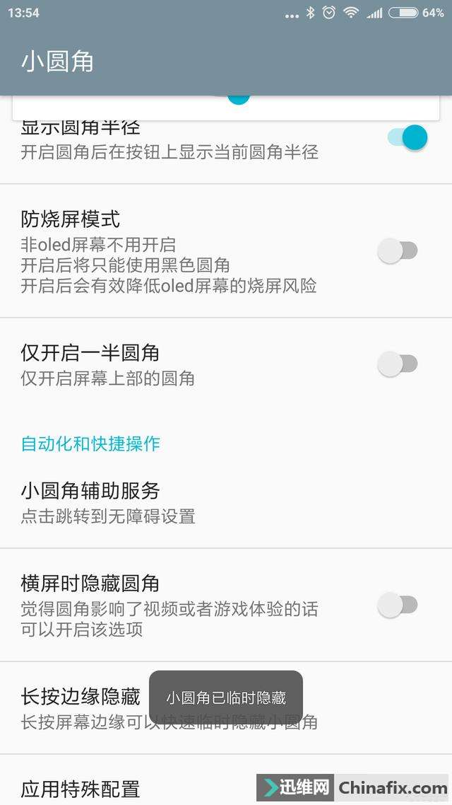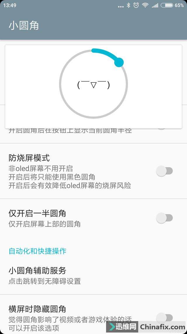| 现在市面上的全面屏手机越来越多,但不是所有的全面屏手机都可以做的尽善尽美,iPhone X的刘海屏再丑也能成为潮流,但一些低端的全面屏手机的屏幕四角竟然还是方的,这就不协调了吧!那么能将直角变成圆角吗?下面小编教大家如何一键将屏幕变圆角的方法,一起来看看吧! 其实现在已经有越来越多的新型手机在屏幕圆角方面做文章了,包括小米 MIX,LG G6 在内的很多厂商都开始重视起来了,说明其体验肯定是相当不错的。这里小编介绍一款APP,名字叫“小圆角”,非常简单直接。它的原理是通过安卓的悬浮窗机制,来遮挡屏幕四角处,让直角变成圆角。开启APP后,首先需要赋予储存读取权限以及悬浮窗权限,这款APP来自个人开发者,其实权限申请得并不多,所申请的权限都和本身的功能有关,还是比较干净的。 需要开启悬浮窗权限 接着,进入到APP当中,可以看到界面上方有一个显眼的开启圆角的按钮。这个按钮可能会随着界面滑动而收起来,想要用的时候,只要重新从上方将它拖出来就可以了。这个按钮周围的圆形滑竿是用来调节圆角的弧度的,调节的效果即时可见,相当不错。只要开启了圆角的开关后,那么这个圆角就会一直存在于安卓系统中几乎所有的界面,视觉效果可谓是焕然一新。 可以调节圆角大小 在所有界面都能生效,APP还有很多其他设置选项 当然,如果你想要用得更加贴心,那么就可以研究一下其他设置选项。例如,通过开启前台服务,可以降低后台被杀的几率,让圆角的存在更加问题;又例如如果用的是AMOLED屏幕,则可以开启防烧屏模式,圆角遮蔽的像素会自动微调,防止因为长时间不发光导致亮度不均出现烧屏现象;而长按边缘隐藏圆角这个功能,则可以在看视频这类场合下大发神威,让屏幕四角不至于因为圆角而不能完整显示视频内容,这款小圆角APP的确有不少亮点规划。 点击边缘隐藏圆角的功能很实用,看视频玩游戏时不会被圆角遮挡内容 以上是使用小圆点如何一键将屏幕变圆角的方法的介绍,如果你是全屏手机的用户,想要调节屏幕四角弧度,不妨按上的方法试试吧! |