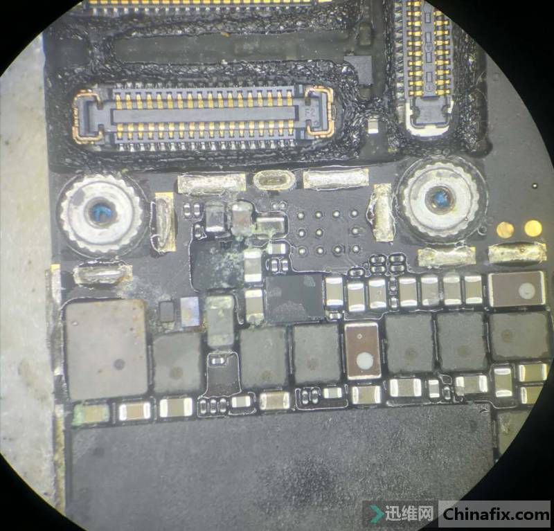 | 机器型号:iPhone6S 故障表现为:严重进水腐蚀,手机不显示 维修过程: 作为手机维修界中的小小白今天我拿到一块进水、手机不显示的故障板,虽然整板有多处进水腐蚀,但是丝毫没有让我怂。 iPhone6S严重进水腐蚀,手机不显示检修思路 图1 iPhone6S严重进水腐蚀,手机不显示检修思路 图2 接上可调电源,看了一下电流跳变还不错能按顺序跳到1A以上(心中暗喜)。 首先拿起我的小毛刷先轻轻的刷,先把显示触摸座子周边和背光芯片附近元件腐蚀的电解质刷掉,然后固定元件位置,再用硬毛刷或者用镊子刮一刮把腐蚀掉的元件撬掉换件。清理干净主板后满心欢喜地扣屏试机,还是开机电流跳变正常手机不显示。 显示触摸连接座上方的小元件进水腐蚀比较严重,还有掉件。那就开始查显示屏的工作条件,打开点位图看了一下,发现除图中圈出来的三个电感外,其他都是滤波电容可以直接拆掉(腐蚀严重,我就直接用镊子挑掉了),三个电感分别连接显示屏的+5.7V供电、触摸+5.7V供电、显示屏1.8V供电,损坏会导致无电压,那就肯定手机不显示,没触摸了,所以直接更换(可以直接短接的)。 iPhone6S严重进水腐蚀,手机不显示检修思路 图3 iPhone6S严重进水腐蚀,手机不显示检修思路 图4 iPhone6S严重进水腐蚀,手机不显示检修思路 图5 iPhone6S严重进水腐蚀,手机不显示检修思路 图6 更换好后,测其对地值和电压正常。接屏开机测试,显示正常。 iPhone6S严重进水腐蚀,手机不显示检修思路 图7 iPhone6S严重进水腐蚀,手机不显示检修思路 图8 到此,手机不显示维修结束,希望各位大神不要喷,本人小小白,求指教。 番外篇: 当看到手机不显示故障修复的那一刻,说实话我有些激动,虽然问题不是很大,但作为来实地不到2个月的小小白我能了解其工作原理和维修流程并自己单独动手修好一片板,是对我自己近来努力和付出的汗水最大的安慰与收获,也不枉老师对我的殷切教导,特以此贴纪念我从迅维开始的成长之路,也感谢老师和同学的帮助,谢谢大家。 |
