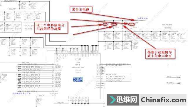 | 进水不开机按照正常维修思路检查开机工作条件的各个电压,检查硬盘时发现PP3V0_NAND主供电没有电压,根据原理图得知这路电压来之电源,然后检查通路中的接地电容发现C1502短路,更换后测验电压正常,单板开机测验电流恢复正常,装上外配完美开机。如图所示: 案例二 先观察主板,然后加电开机测验,经过加电测验,发现主板开机固定在80mA左右,cpu复位电压出问题。 仔细观察发现元凶就在非常容易进水的腐蚀的显示ic上,它进水会导致i2c总线出问题,电流固定在80mA不开机!这就是为什么会有同行说cpu暂存坏,因为暂存也是总线上的,出问题也会导致6s不开机。 进水不开机 收藏 |