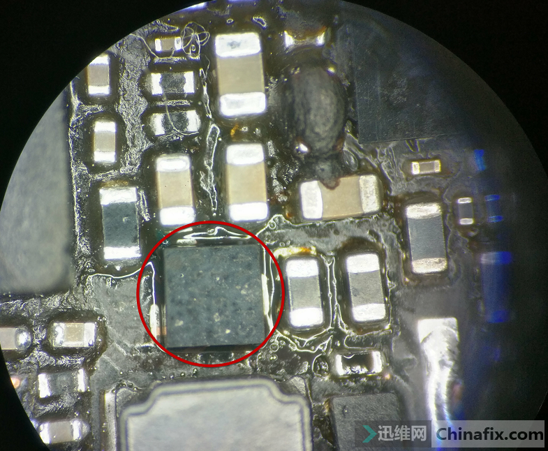 | 朋友的收到其他维修同行的一台华为P9,说是手机开机不显示,让我修一下。故障描述如下图: 二修华为P9手机开机不显示故障 图1 二修华为P9手机开机不显示故障 图2 收到机器后拆下主板。 二修华为P9手机开机不显示故障 图3 二修华为P9手机开机不显示故障 图4 发现主板AB面都有焊油,询问修过那里,客户说就修过灯控。 二修华为P9手机开机不显示故障 图5 清洗干净焊油后在显微镜下观察发现多处焊过,把焊接过的地方处理好。背光芯片、主供电转换芯片被拆掉,用线直连的,处理好焊盘后用了一个0欧电阻把A1与A2脚连接起来。 二修华为P9手机开机不显示故障 图6 背光芯片主供电转换芯片线图路如下: 二修华为P9手机开机不显示故障 图7 显示屏座边上一电容焊盘弄掉了,还飞了一条线在电容上,测量电容焊盘掉的那脚是接地,去掉飞线,重新焊好电容。 二修华为P9手机开机不显示故障 图8 测量显示座阻值发现显示座40脚阻值无穷大,观察发现40脚相连元件LB1703掉件。 二修华为P9手机开机不显示故障 图9 直接用线连接,掉件实物图如下: 二修华为P9手机开机不显示故障 图10 处理完可见故障后开机测试发现暗屏,观察发现显示电源有焊过,拆下显示电源重植后开机测试故障不变,还是暗屏。显示电源实物如下图: 二修华为P9手机开机不显示故障 图11 安卓大部分机型的时序是:当CPU初始化显示屏后输出开启信号给显示屏供电芯片(ENP:正电压开启;ENN:负电压开启),显示供电芯片得到开启信号后输出VSP供电与VSN供电给显示屏。CPU输出背光供电开启信号给背光供电芯片,背光供电芯片在自身供电满足的情况下,输出15~22V供电给显示屏背光灯。 既然机器能正常显示,说明CPU已经检测到显示屏并初始化完成,那么接下来测量显示电源输出的VSP供电与VSN供电(相当于苹果手机里的正负5.7V电压),VSP供电与VSN供电有测试点,测试点在屏连接座右下方,测量有正负5V左右的电压。 VSP供电与VSN供电正常,那么故障就可以锁定在背光供电芯片还有CPU上了。拆下背光供电IC后发现芯片下面锡珠大小相差太大,怀疑是芯片有焊连锡。背光供电IC实物图如下: 二修华为P9手机开机不显示故障 图12 处理干净焊盘后重新植珠,焊回背光供电芯片后开机背光正常。 二修华为P9手机开机不显示故障 图13 华为P9手机开机不显示检修思路结束! |