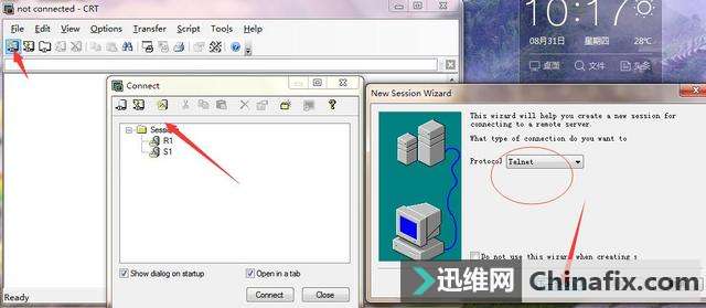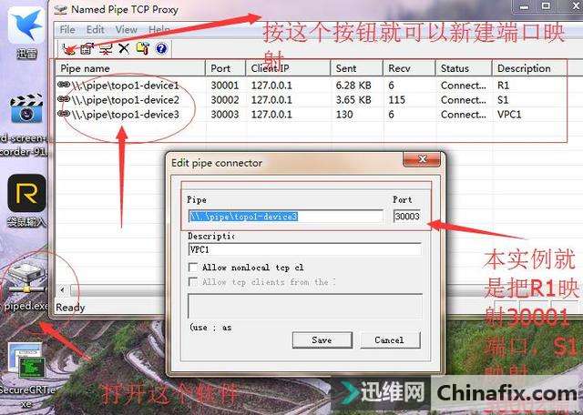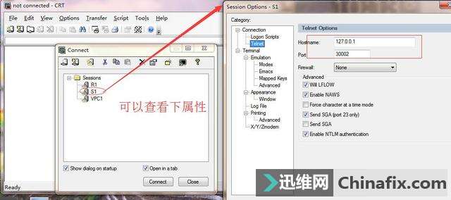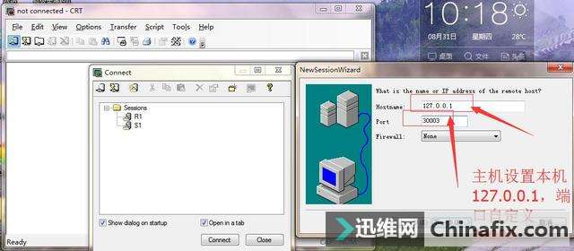 | 实验004 华为模拟器HCL和piped及secureCRT的综合运用 在hcl中,如果拓扑结构较为复杂,可能会造成设备配置界面的窗口太多而显得杂乱 实际网络设备配置台式电脑与设备之间的连接 在HCL模拟器中,我们对设备的配置,实际上是通过virtualBox虚拟机的串口COM2运行。 本例,我们创建一个简单的拓扑图,一个路由器R1,一个交换机S1,一个虚拟PC,VPC1,我们用线连接起来,并启动。 然后我们打开virtualBox,就会发现对网络设备配置,是通过virtualBox虚拟机的串口COM2运行。 我们接下来用Piped工具(网上可以自行下载)做端口映射,本实例就是把R1映射为30001端口,S1映射为30002端口,VPC映射为30003端口。具体路径请参考上图COM2路径。 映射完之后就可以用secureCRT工具来配置他们了,很方便的。先建立连接,要用telnet,如下图,我们的配置。 具体建立如下步骤 记住选择telnet 设置好端口即可 命名好名字,方便配置管理 到此就是新建连接的方式方式,下图就是实际运行时的图例 备注: 实际运行时,请勿关闭piped工具。 |