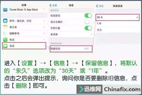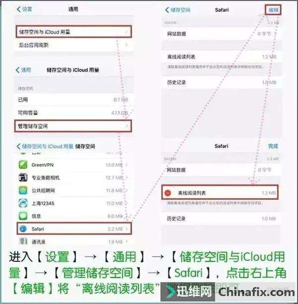 | iPhone内存已满是小内存用户心中永远的痛,今天小编跟大家分享一个手机清理内存的方法,保证又快又有效。 大部分果粉最占用内存空间的一般就两样,一个是相册,因为里面有大量的照片和视频;而另一个巨无霸就是“微信”,追求大而全的微信使用一段时间后就会变成一个庞然大物。 一:关闭【保留正常曝光的照片】 iPhone手机的相机功能一直被大家所喜爱,经常拍照是肯定的。如果你经常运用iPhone的HDR拍照模式,就会发现,你所拍的照片都保存了两份,时间一长,肯定会大量占用你的手机内存。那么如何关闭HDR照片备份呢?依次点击进入【设置】——【照片与相机】——关闭【保留正常曝光的照片】。 手机清理内存的方法图1 二:更改信息保存时间 一般iPhone手机的默认设置会永久保存你所有发送/接收的短信,这一功能伴随着手机运用时间变长,就会极大的占用手机内存,因此最好将其更改保存时间为30天或一年。 手机清理内存的方法图2 三:清理Safari缓存 如果你经常运用Safari浏览网页,那么我们就可以定期的清理Safari中的网页历史浏览记录和浏览数据。依次点击进入:【设置】——【Safari】——【清楚历史记录与网站数据】。 手机清理内存的方法图3 四:清除离线数据 当我们运用一些使用的时候,经常会储存一些离线数据,例如Safari就会在你在线浏览是自动保存一些数据供你离线时运用。依次点击进入:【设置】——【通用】——【储存空间与iCloud用量】——【管理储存空间】——【Safari】——【编辑】——【离线阅读列表】。 手机清理内存的方法图4 五:备份并清理数据 iPhone手机用户可以将手机中的数据通过手动备份,备份到iCloud或者iTunes中,如果你手机中的照片过多也可以通过数据线将其转移到电脑上。备份好之后就可以放心的将手机中的数据删除,以便腾出更多的内存空间来方便运用。手机清理内存的方法你学会了吗? |