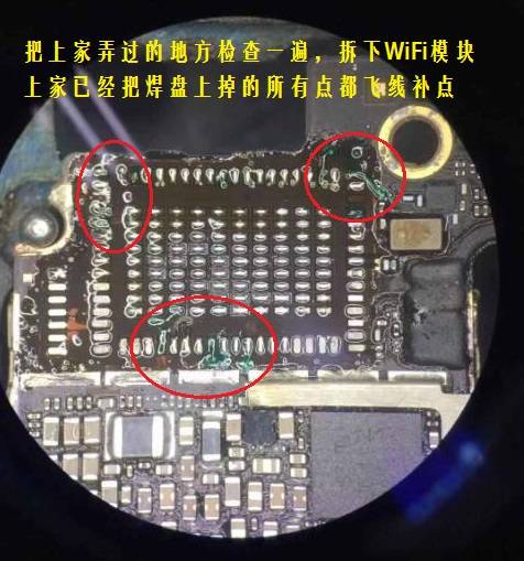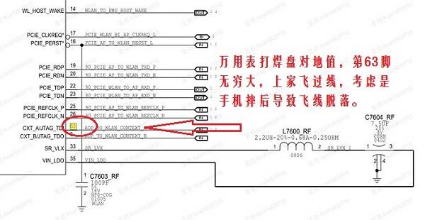 | 本文案例由迅维深圳旗舰店提供,未经授权禁止转载! 在这里给大家接收收到其他维修同行的一台iPhone7 Plus,故障描述是能正常开机使用,但手机wifi打不开,不能连接无线网。,一起来看看吧! 客户描述以前修过,修好后过了一段时间又不能用了,这种现象要么是wifi模块坏了,要么就是客户摔过导致焊盘掉点,这些情况比较常见。 iPhone7 Plus 手机WIFI打不开检修思路 图1 既然是二修的,先把上家弄过的地方拆下来看看,拆下后看见wifi模块的焊盘已经有很多掉了,上家都已经把线飞好了。 iPhone7 Plus 手机WIFI打不开检修思路 图2 先用万用表打遍焊盘的对地阻值,一个一个的查,最后到第63脚时,发现显示无穷大,正常是有400多的阻值的,因为上家已经飞了线了,所以考虑是客户摔到手机后导致线脱落了。 iPhone7 Plus 手机WIFI打不开检修思路 图3 iPhone7 Plus 手机WIFI打不开检修思路 图4 用刀片刮掉上家涂好的绿油,飞的线已经脱落了,挖出板层的线后,用万用表再次测量对地阻值,有阻值,说明板层没有断线,直接用电铬铁再次飞好线,确定没问题后,重新装好wifi模块。 iPhone7 Plus 手机WIFI打不开检修思路 图5 开机测试,wifi开关能正常开启关闭了,信号也能正常搜索并且能连接上,故障机修到这里,终于修好值得探讨。,维修结束。 iPhone7 Plus 手机WIFI打不开检修思路 图6 手机WIFI打不开检修思路到此结束。 iphone7wifi打不开专题:https://www.jdwx.cn/zt/9186-1.html 禁止转载! |