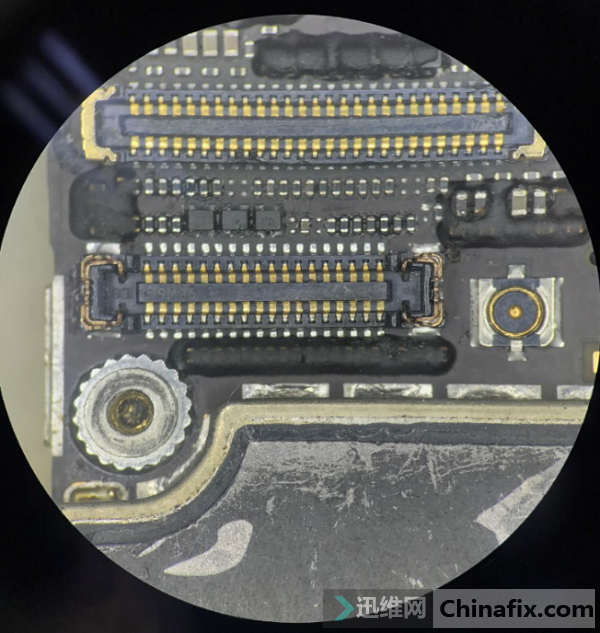 | 小编为大家提供新的家电维修文章接收收到其他维修同行的一台iPhone 6s Plus 手机卡白苹果不开机,这也是6代机器的常见故障了,一起来看看究竟如何维修吧。 客户描述说手机之前进过水,现在是要连接充电器能可能开机,不然一直卡在苹果图标界面,有时候又能正常开机,只要不关机,一直能用,一关机又会变成开不了机了,自己换过尾插和电池。 iPhone 6s Plus 手机卡白苹果不开机 图1 手机要插充电器才可以开机,插充电一直卡LOGO 自己更换过电池和尾插,看来很有可能是手机不充电。 拿到机子,接充电器看一下充电电流,显示没有充电电流,也没有充电图标,拆开机子接可调电源开机,发现起跳电流200多毫安起跳。 iPhone 6s Plus 手机卡白苹果不开机 图2 结合不能充电,很有可能是USB的 PP3V0_TRISTAR 供电短路。测量发现 PP3V0_TRISTAR对地短路。 iPhone 6s Plus 手机卡白苹果不开机 图3 拆除USB芯片 U4500 发现此电压还是对地短路。查看电路图,此电压去到USB芯片 U4500、主电源 U2000、U5411_RF 显微镜下观察发现此电路上的C5403_RF滤波电容已经破损。 iPhone 6s Plus 手机卡白苹果不开机 图4 直接镊子挑掉。对地阻值恢复正常。补回U4500 USB芯片。 iPhone 6s Plus 手机卡白苹果不开机 图5 装机,充电恢复正常,能正常进系统,测试功能的时候发现前摄像头打不开。 iPhone 6s Plus 手机卡白苹果不开机 图6 拆下主板,测量前摄像头座子J3100 对地阻值正常。 iPhone 6s Plus 手机卡白苹果不开机 图7 显微镜下观察发现,J3100座子有此变形破损。 iPhone 6s Plus 手机卡白苹果不开机 图8 直接更换一个前摄像座子。 iPhone 6s Plus 手机卡白苹果不开机 图9 更换完毕, iPhone 6s Plus 手机卡白苹果不开机 图10 总结: iphone6S重启专题 https://www.jdwx.cn/zt/10310-1.html 苹果不开机专题:https://www.jdwx.cn/zt/17032-1.html 本文案例由迅维快修旗舰店提供,未经授权禁止转载! |
