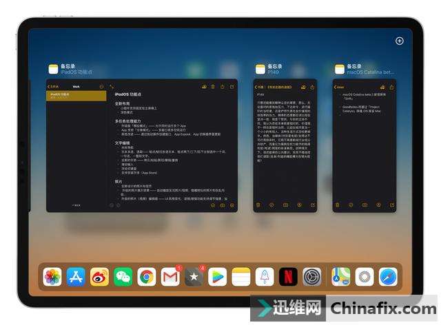 | 「一个名字,就说明了一切。」在 iPadOS 的介绍页面中,苹果用了这样一句话来形容这个 iPad 新系统。 自 iPad 诞生以来,苹果iOS 系统赋予了它强大的使用生态和无缝的用户体验,甚至有许多用户选择更廉价的 iPad 当作 苹果iOS 的入门设备。但与主打便携的手机不一样,iPad 的卖点是大屏幕带来的可能性,许多在小尺寸屏幕 iPhone 上难以完成的操作,大多都能在 iPad 上搞定。特别是随着苹果推出 iPad Pro 系列之后,iPad 的生产力也越来越被人们所看重,人们不再满足于只能「煲剧」或者进行简单文字工作的 iPad。 可能是看到了消费者对 iPad 认知的变化,苹果于去年秋季推出了全新 iPad Pro 系列,其最大的变化是带来了许多体现生产力的「硬件元素」,例如 USB-C 接口、磁吸 Apple Pencil、更强的 A12X 芯片等,但面对这些强大的硬件,曾经「好用」的 苹果iOS 系统却有些跟不上节奏。 所以在今年的 WWDC 开发者大会上,苹果顺势发布了 iPadOS,这也是首个面向 iPad 的操作系统。现在 iPadOS 已经更新到第三个开发者测验版,追求尝鲜的我也第一时间为手头上的 iPad Pro 进行更新,今天和大家分享的是 iPadOS 对于大屏幕的利用以及多任务处理的升级。 大屏幕,就该这样用 iPad 的亮点之一是宽大的屏幕,无论是娱乐还是工作,大屏幕的特点让 iPad 占据优势。但碍于系统的原因,针对小屏幕手机的 苹果iOS 系统无法完全释放 iPad 大屏幕的特点。 拿桌面布局来说,以往运行着 苹果iOS 的 iPad 的 Dock 栏虽然能摆放更多图标,但 苹果iOS 的桌面布局无法将 iPad 的大屏幕物尽其用,过大的图标不仅浪费了太多空间,而且看起来也不够美观。作为对比,iPadOS 对主屏幕的布局进行重新规划,桌面首页的左侧加入了「今天」视图,你可以在这个区域添加自己心仪的小组件,以便完成一些快速操作。同时 iPadOS 还将使用的图标缩小化,更加匹配 iPad 的屏幕尺寸,也增加了一屏能够容纳的使用数量。 整体而言,iPadOS 对于桌面布局的改进是令人兴奋的,以往陈旧的规则布局已经很难再让人保持新鲜感。唯一的遗憾可能是控制中心的改动不够彻底,虽然现在可在控制中心内直接选择 Wi-Fi 和蓝牙,但下拉时占据整个页面的毛玻璃效果在屏幕更大的 iPad 上可能显得有些多余,有时我只是想快速调节屏幕亮度,而下拉呼出控制中心之后,整个页面会被毛玻璃效果覆盖,不仅会打断先前的工作状态,而且也浪费了屏幕左边空出的空间,如果改为只在右上角显示,而不占用其余屏幕,效果可能会更好一些。 除了桌面布局的改变能够体现出 iPadOS 开始注重 iPad 大屏幕的优势之外,另外一个能够发挥出 iPad 大屏幕特点的是「多任务处理功能」。早在先前面向 iPad 的 苹果iOS 版本中,苹果就曾为其添加了多项体现多任务处理能力的特点,例如通过程序坞同时打开多个使用、通过分屏浏览同时运用两个使用、画中画功能、个别使用支持拖放功能等等。 iPadOS 在这个基础上,完善了整个多任务处理功能。 首先是侧拉功能。以往的 苹果iOS 只能将一个使用移入侧拉,如果你要将第二个使用以侧拉的形式呼出的话,必须重新操作一次,费时费力。但在 iPadOS 上,侧拉变得更好用了,它不仅支持同时打开多个使用,而且操作也十分简单,例如在底部轻扫实现不一样使用的切换、向上轻扫查看侧拉模式中的所有使用等等。 其次是「使用分身」,iPadOS 支持为同一使用打开多个窗口,这项改进在实际体验中也很有用。例如同时打开两个文档窗口完成比对工作、同时打开两个地图窗口查看不一样地图/路线,或者在文件夹中同时整理多个文件等等。(注:在分屏浏览状态下,如要将其他使用加入侧拉模式,只需将其从程序坞中拉到位于中间的使用分隔条上即可。) 侧拉以及使用分身的升级使得 iPad 从以往只能最多同时打开三个窗口(分屏浏览 2 个+侧拉 1 个)变为能同时打开多个窗口(分屏浏览 2 个+侧拉 N 个),这对于那些需要经常在 iPad 上处理复杂任务的人群来说,显得十分有吸引力。但这也引来了一个问题,随着可打开窗口的增多,特别是「使用分身」的引入,我要如何管理同一使用打开的不一样窗口?iPadOS 给出的答案是「App Exposé」和「窗口选择器」。 和 macOS 相似的是,苹果为 iPadOS 引入了 Exposé 功能,你可以通过在程序坞中轻点 App 图标(或按住图标激活快速操作菜单),来查看这款 App 已打开的所有窗口,并快速定位到特定的窗口。 你也可以长按 app 图标来开启 Exposé 功能 iPadOS 还加入了窗口选择器,一旦你将已经打开了多个窗口的使用拉入分屏浏览或者侧拉功能时,这个窗口选择器就会激活,你可以选择打开任意一个已打开的窗口,或者点击右上角新建一个新窗口。 自从苹果在 苹果iOS 9 中首次为 iPad 加入多任务处理功能,并推出多次升级以来,iPad 的操作交互就开始丰富起来。虽然 iPadOS 的多窗口交互大部分基于 苹果iOS 11,但多项改进和升级使它变得更完整:既吸取了 苹果iOS 对于触控的优化,同时也兼顾了 macOS 的窗口支持,算是在这两者之间取得了很好的平衡。 |