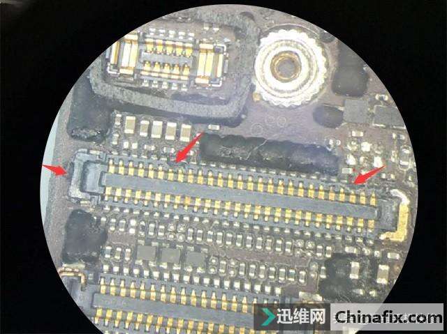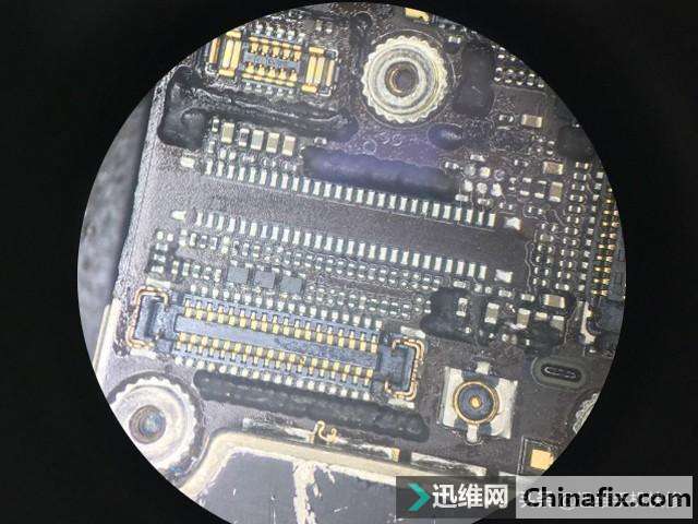 | 收到客户收到其他维修同行的一台iPhone 6sp,客户描述自己换屏幕后忘记断电导致烧了,现在手机不显示。在实际维修中,自行更换屏幕、换电池导致主板受伤的不在少数,再次提醒大家,自行操作时一定小心!如果动手能力不强的话,建议送专业维修店进行更换,避免伤及主板,问题扩大。 维修过程: 拆开主板,显微镜下观察,发现FL4291、FL4293、FL4292、FL4211四个保险电感已经掉了。FL4291、FL4293、FL4292三个电感有问题会导致手机阴阳屏,电感FL4211有问题会导致手机完全不背光。 FL4211电感的焊盘已经掉了一个,把它刮亮后进行短接。 显微镜下观察,显示座子有被烙铁烫变形和掉了左边的金属接地固定脚,顺便把显示座子也一起换了。 首先去掉原显示座子,镀锡。 换上显示座子后,顺便把电感FL4291、FL4293、FL4292一起短接了。 用客户自己买的国产屏测验完全不显示,用我们的原装屏测验为显示花屏。经过装屏开机测量,(打开鑫智造查找点位图)显示的-5.7V供电不出,阻值为正常。 判断为显示IC被烧坏,直接更换显示IC。 装屏再次测验,显示一切正常了,问题排除,维修到此结束! 本案例由迅维快修深圳店(赖工)原创提供,未经允许不得转载! 需要维修咨询的小伙伴们,点击下方【了解更多】联系我们! |
