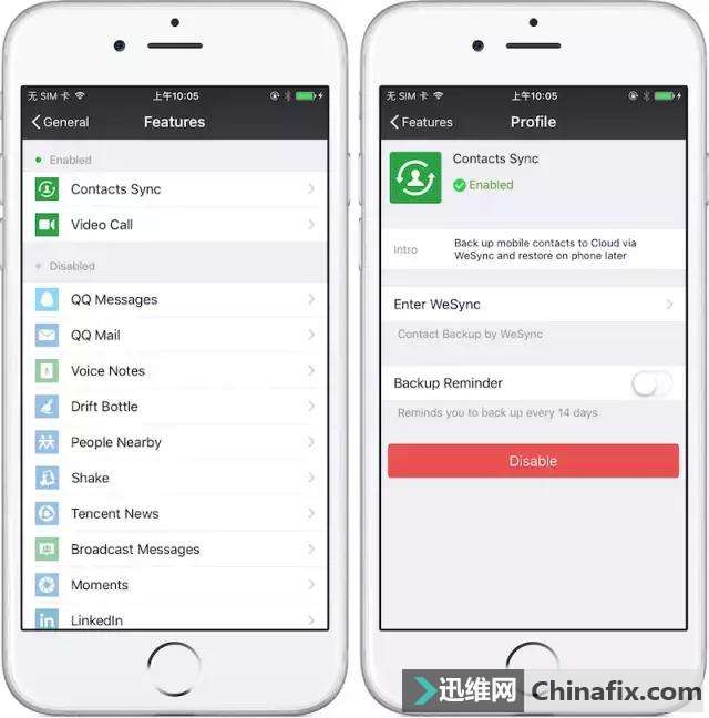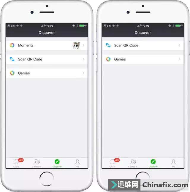 | 每天看微信不下上百次,那不想要的微信功能可以关闭吗? 可以的 其实,微信有些功能,是以可选的插件形式存在的。不喜欢的功能只需要禁用对应的插件就好了。 你可以在微信的「我」-「设置 」-「通用」-「功能 」中找到所有可禁用的插件。你可以根据自己的需要自由定制。 需要说明的是,想去掉「购物」模块需要将微信语言修改成英文或者繁体中文,修改语言的设置在「我 」-「设置 」- 「通用」-「语言 」里。 在禁用了朋友圈或者一大堆之后,可以看到微信界面变得十分清爽。这时候当你看到下面右图只有「扫一扫」和「游戏」时,一般都会快速回到工作中去,而不是去看看朋友同事的动态,专注力会提升。 禁用朋友圈并不会删掉所有记录,只会去掉朋友圈入口以及消息通知,对你和其他人发的朋友圈内容没有任何影响。你可以在你有时间看朋友圈的时候打开查看。 想打造纯净版微信,就快去试试吧! |