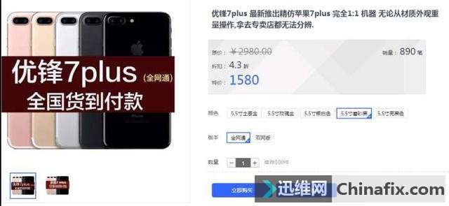 | 随着广大机友防骗能力的提升,现在华强北造iPhone山寨机充正品卖貌似已经行不通了。 现在很多华强北山寨厂家瞄准了那些有装逼需要但是又买不起正品iPhone的人,还说我们的手机连专卖店的人都无法识别,甚至建立起了一条从生产到渠道到销售的完整产业链。 先来看看这张官方宣传图片: 我直接笑了,估计库克看到估计会吐血!我们再来看看这家的山寨机到底怎么样: 据卖家称,这款山寨iPhone 7plus是根据真机完全一比一精仿出来的,包括任何的细节都有考虑,即便是拿到专卖店不插电脑也无法识别! 卖家展示了手机底部的lighting接口和底部的喇叭接口: 而且附送的耳机也是lighting接口的,和真耳机长的一模一样。再来看看正面: 确实辨别不出来,你们能看出和真正的iPhone 7 Plus有什么分别吗?更牛的是这句话,我直接笑喷了: 再来看看系统方面,系统是基于安卓6.0的精仿的苹果iOS10界面: 从锁屏界面下左滑进入通知消息页面,与真机一模一样。 HOME键不是按压式的,而是触摸式的,华强北真的用心了!而且还支持3Dtouch和livephoto功能: 相信很多用真iPhone的人都不知道这个livephoto功能,华强北山寨机竟然还真的给做了: 卖家都要把这手机吹上天了,我们不说废话,直接看看配置吧: 处理器是MTK6753,这款处理器是曾经魅蓝note2用过的。 然而这款号称专卖店都无法识别的假iPhone卖多少钱呢? 用两年前低端手机的配置,以精仿iPhone别人无法识别的噱头来吸引没钱还想装逼的人去购买,到手后你就会发现这手机到底有多卡。如果你有装逼的需要但是真的无法支付一个全新的iPhone 7的话,建议你买收到其他维修同行的一台二手iPhone6s,不仅好用而且不贵。 |