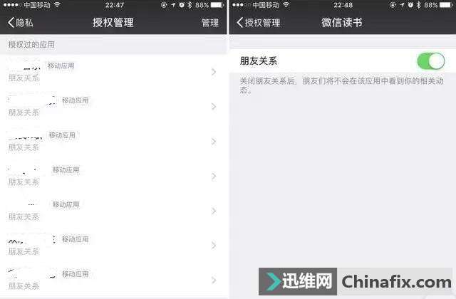 | 平时玩游戏、下使用的时候,为了不用注册,很多人经常贪图方便、直接用微信授权登录...... 但是,授权之后就真的没什么事了吗?大家有没有想过授权以后你的信息会出现在哪里呢? 其实,很多人并不知道运用微信授权登录后,使用会读取你的微信好友列表,并自动找到他们,告诉他们你也在用这个使用,甚至用这个使用做了什么。 QQ 音乐会把你听过的歌告诉你的好友 你读的书会出现在微信读书好友「发现」页 虽然看起来无伤大雅,但自己的信息被莫名展示总有点不好吧,要是干了不好的事,被好友看到是不是很尴尬呢?那么,如果想继续用这些使用,又不想让自己的信息被开发者「透露」给微信好友...... 该怎么做呢? 首先,请 苹果iOS 用户更新至 V6.5.16 的微信,在这个版本的微信中,我们可以方便快捷地对自己的微信授权信息进行管理,避免个人隐私泄露。 一、关闭使用对你的动态提示 在「设置」-「隐私」中找到「授权管理」。 你可以在这里看到你曾经用微信授权登录过的游戏、使用或是网站名称。 温馨提示:用微信账号注册的使用、游戏账号不会出现在这个列表中。 选择某一项后,可以进一步关闭「朋友关系」。关闭后,使用将不会再自动把你的运用动态展示给微信好友。既减少了一些无谓干扰,也保护了你的隐私。例如,关闭 QQ 音乐/微信读书的这个选项后,朋友不会收到你最近在 QQ 音乐/微信读书听了什么歌、正在读什么书的提示。 二、快速删除授权 如果觉得关闭了「朋友关系」还不够,你也可以点击右上角「管理」,快速取消对该使用的授权。取消后,你的登录信息不会在保留在该使用上。当然,如果需要,下次登录这些使用可以重新授权。 不想自己的信息再不知不觉出现在微信好友的使用界面,就赶快去微信中取消不必要的授权吧。现在这个功能只在 苹果iOS 版的微信用户中有, 相信 Android 版微信的朋友也将很快用上。 |
