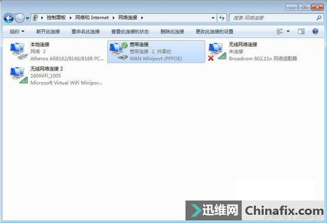 | 在运用电脑的过程中,我们常常会遇到问题,其中最常见的要数宽带连接错误720了,那么当你遇到Win7宽带连接错误720如何维修?其实很好搞定的,我们只需删除之前的宽带连接,重新创建一个就可以了,具体方式请看文章内容。 方式/步骤: 1、开始,打开控制面板。 2、打开网络和共享中心。 3、然后找到【更改适配器设置】。 4、找到现有的宽带连接,右键单击将其删除。 5、删除后回到网络和共享中心重新建立新的宽带连接。 6、逐步设置新的连接或网络。 7、输入账号和密码,就可以重新连接了。 以上就是Win7宽带连接错误720的搞定方式了,方式很简单,我们只需要创建新的宽带连接,之后重新输入账号密码就可以了。 |