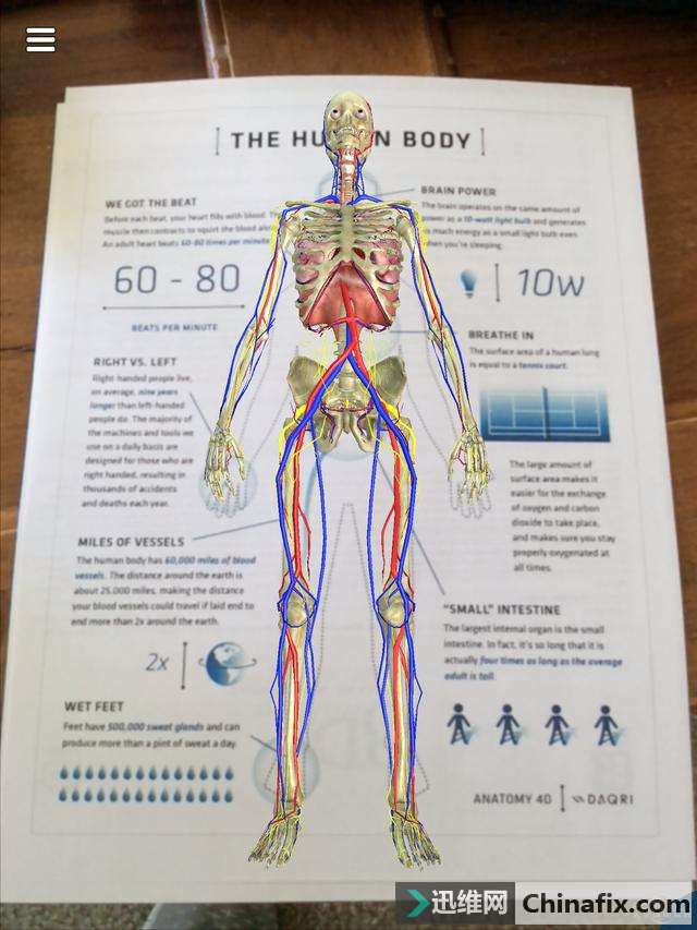 | 1快速跟进苹果iOS11的宜家家居AR回顶部 随着iPhone 8 和 iPhone X的发布,AR再次成为了热门话题。新款iPhone被称为了第一款真正为AR打造的智能手机,A11 芯片让 iPhone 的 AR 功能可以更好的实现,GPU 能渲染更真实的图像,摄像头、陀螺仪专门为 AR 而校准,看来苹果对AR真是下了血本了。那么AR是啥?用我们手里的智能手机能体验AR的魅力么?一起往下看去,几个AR使用让你体验AR的魅力所在。 苹果发布会上演示的AR游戏 关于AR的那些事儿 增强现实技术(Augmented Reality,简称 AR),它是一种将真实世界信息和虚拟世界信息“无缝”集成的新技术,是把原本在现实世界的一定时间空间范围内很难体验到的实体信息(视觉信息,声音,味道,触觉等),通过电脑等科学技术,模拟仿真后再叠加,将虚拟的信息使用到真实世界,被人类感官所感知,从而达到超越现实的感官体验。 简单点来说,就是将计算机生成的立体动画覆盖在现实世界的物体之上。比如利用AR技术可以凭空的在桌子上“变”出一盏台灯、一盆花一只动物,甚至将桌面变成游戏的战场,当然现在还没实现释放味道效果。 而iPhone X带来的AR新体验中,凭借着新的陀螺仪与加速计及文章开头所述的设备,实现了用户可以将虚拟的物体放在平面上,无论绕着它怎么移动,前后走动,物品就像静止的放在那里的物品,不会有显著的抖动、失位。一句话,iPhone X将AR中的虚拟物品变得更加的真实了。 用AR技术将恐龙放到现实世界中AR与VR的分别 VR是纯虚拟场景,更多的是用于用户利用设备与虚拟场景的互动交互,现在设备性能要求较高。AR则是现实场景和虚拟场景的结合,在摄像头拍摄的画面基础上,结合虚拟画面进行展示和互动,一般的智能手机装上AR使用就可体验。 某VR游戏 说起AR,相信许多同学们印象较深的就是前一阵子热门的《Pokemon GO》游戏了,这款利用AR技术来引导玩家东奔西跑的去真实世界里抓虚拟的宠物小精灵的游戏,让全世界玩家都玩的不亦乐乎。 Pokemon GO 体验AR的魅力 几款AR使用来帮忙 想要体验AR的魅力?现阶段我们可以通过在智能手机中安装AR类手机使用来进行体验,接下来就介绍几款AR使用,让你体验一下AR的趣味性与实用性。 将家具搬回家看效果 我们逛家具店的时都会出现这样的想法,这么一大套家具买回家,如果放着不好看如何维修?与周围的事物不搭配如何维修,地方不够大放不下如何维修?家装领域的宜家的家居指南使用,就可以帮你忙。运用宜家的家居指南使用,调到“3D”模式,就可以将多种家具“搬”进自己的房子,然后投影到你所需要摆放的地方,看看实际摆放效果。需要注意的是,家居指南计算房间大小时需要纸质版宜家《家居指南》作为参照物。 宜家《家居指南》软件 温馨提示 将家具“搬”回家看看效果先 想想看哈,在装修前先用AR技术先实际看看装修效果后再进行装修,那就不会有那么多装修好后的不满意了。想想如果购物软件也支持这个功能的话有多爽,衣服鞋帽先AR试穿了先,家居先AR搬回放在现实中看看先,科技改变购物体验啊。对了现在已经有VR看房了。 2支付宝和百度也能玩AR?回顶部 支付宝也有AR 说起购物,其实支付宝手机客户端里也有AR功能,而扫一扫的AR功能,就可以触发AR,还能进行扫花识花,还有就是可以通过门店互动扫描标识获得优惠券。 支付宝AR扫描 图9 支付宝AR扫描结果 手机百度里的AR 还有就是手机百度里的AR功能,然后点击搜索框旁边的“相机”按钮,接着在底部的选项中选择“AR”,接着把摄像头对准书本内容,成功扫描识别内容后,就会出现对应的AR 立体动画了。身旁没教科书咋办?没关系,百度AR为你准备了目录,滑动即可找到现在支持的内容。(神奇动物园、百度AR高考、景点等)。 手机百度软件 安培定律 动物激素调节 除了高考内容外,还有AR动物园帮助小朋友认识动物,还有能让你足不出户就能游览的景点,能带你去看看神秘的神农架呢(做的不怎么好看。。。)。 看看神农架 人体解剖 清清楚楚看解剖图 《人体解剖 4D》(4D Anatomy)是一款简单易用能够让用户了解人体构造的软件,利用手机屏幕幕幕呈现出细致的人体结构,从骨架到血管和内脏等,非常适合医疗教学。运用方式:打开使用,扫描下边的图片,就可以看到人体解剖图,用户可以选择层数及需要显示的内容,可以切换男性女性,可以任意角度进行观察。 4D Anatomy软件 用4D Anatomy扫描此图 解剖图呈现 3导航和翻译AR你试过没回顶部 可以自己DIY的AR 视+AR和幻视 视+AR是一款浏览器,但是它并非传统的网页浏览器,用它可以查看AR,并且进行AR效果录制。用户可以与大蜘蛛、悟空等各类AR角色在真实场景中互动合影,恶搞的场景可以录制好友放屁的效果等等。在其官网,用户还可以自行DIY一个AR互动作品,运用视+AR扫描就可以出现AR互动效果,例如扫描指定图片就会出现文字或者播放视频动画,例如扫描指定照片就会出现绚丽的多图片展示效果。 视+软件大小 视+AR 手机客户端 图16 用户可以添加动画效果 在网页版中,有着视+AR 工作台,让用户可以DIY出一个AR作品。有兴趣的网友可以运用视+AR手机客户端的搜索功能搜索“203283”,然后再扫描下图,看看小编给你准备的是啥AR内容呢。 扫描该图(无结果请查看大图扫描) 视+AR 工作台 同类的还有幻视,同样支持DIY AR互动作品,直接扫描相关海报就可激活AR效果。 幻视的AR天气预报效果 另类导航使