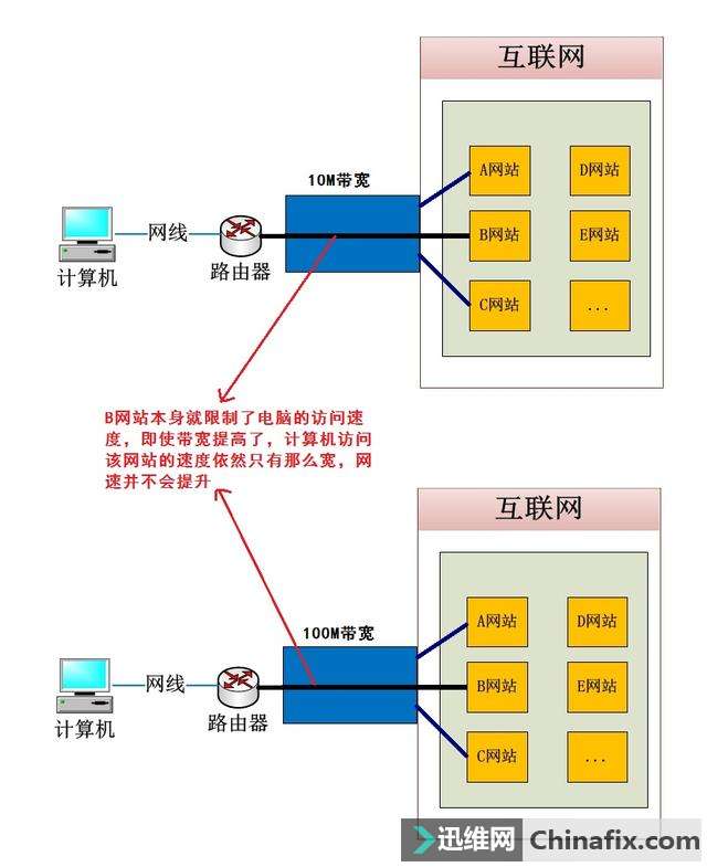| 相信大家在运用宽带上网的过程中,都遇到过一个最常见却又难以搞定的问题:订购的宽带是100M,但是电脑测量的网速只有60M,甚至更低,而且上网速度依然很慢!当大家遭遇这个问题时,肯定都很头疼,但却又苦无搞定办法,只能凑合运用! 网速测验 小编今天就和大家分享一下带宽很高,但网速依然很差且上网速度慢的问题所在以及可用的搞定办法,看了百分百受用哦!——最后附带解除计算机默认限速技巧!一、首先要清楚带宽与网速的关系 通常我们认为带宽越大,网速就会越快,其实这是无解,正确的认识是:带宽与网速并没有直接关系!我们举个简单的例子:带宽就好比马路的宽度,马路又分为机动车道和非机动车道,机动车道可以随马路的宽度增加而拓宽,进而就能增加机动车的行驶容量,但即使马路加宽了,非机动车道不变的话,那就并不能增加非机动车的行驶容量,网速就好比带宽马路上的机动车与非机动车的车道,如果计算机访问的网站本身走的就是非机动车道的话,那么即使带宽增加了,网速也不会加快,但如果网站不限速,走的是机动车道,那么带宽增加,网速肯定会提升!请看下图: 网站本身限速,带宽提升不会提升该网站的网速二、网线、光猫、路由器、网卡,无线WiFi对网速的影响 网线——质量和长度会衰减网速: 理论上网线最长长度不能超过100米; 若网线质量够好,抗拉性和抗干扰性能好,最大长度可达到120左右,不建议再长; 网线不可过长的原因:计算机能识别的语言就只有0和1,网络传输的信号就是0和1,01信号在网线中以电流的形式传播,网线的耐压为-15v~+15v,且存在电阻,根据电流与电压的关系以及高压输电原理,线路越长,就要用越大的电压来提升传输能力,因此,如果网线过长,但是电压依然在-15v~+15v,传输过程中就会导致电流信号越来越弱,直至消失,所以网线不宜过长; 网线只要在两端连通后,信号就会慢慢衰减的,这跟网线质量,长度有关。 光猫、路由器——下一级设备支持的带宽要大于上一级设备提供的带宽 假设订购100M宽带,那么光猫肯定要能支持100M;100M宽带从光猫出来接到路由器,路由器必须要支持100M网速且设置路由器参数时LAN口速度要设置大于100M. 电脑网卡——必须要支持订购的宽带带宽 WIFI——电磁波会影响网速WIFI的信号强度会随着距离变衰减;无线路由器的wifi发射器是一个功率很小的信号发射中心,最靠近中心的信号最强,距离越远信号强度越弱,一般的无线路由器信号覆盖范围只有十几米;因此,距离无线WiFi信号源越远,信号强度就越弱,笔记本的上网速度就会变慢,包括上传和下载。三、测量的网速比订购低的原因及搞定办法 最直接的测量办法是把入户线连接到电脑上测验,这样测量得出的网速最准确;路由器设置了限速——解除限制,参考昨天的文章“三分钟学会路由器各参数功能及设置方式,可应付所有路由器设置!”;光猫,路由器,笔记本网卡本身不支持高速带宽——更换设备; 入户线到笔记本之间的网线质量差,过长,距离无线路由器较远衰减了网速——换高质量网线,调整计算机与路由器的距离;计算机网卡驱动过旧——下载驱动精灵,更新网卡驱动,包括有线和无线网卡; 计算机网卡偷工减料,不支持高速网络——台式电脑可更换网卡,笔记本网卡是集成在主板上的,无法更换;计算机网卡设置不对,一般默认都会自适应至高速网络,具体设置如下图: 找到网卡设备 设置最大速度四、附送小技巧——解除计算机操作系统默认网速限制 1. 运行:gpedit.msc,回车,打开组策略编辑器 打开组策略编辑器 2. 依次点击“计算机配置”—“管理模板”—“网络”—“Qos数据包计划程序”—“限制可保留带宽“——勾选“已启用” 解除系统默认限速 好啦,小编今天就分享到此,喜欢的请关心哦!您的关心与分享是小编最大的动力!有计算机方面的问题可以私信小编哦,100%解答! |