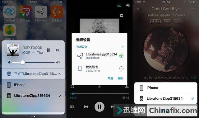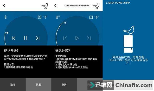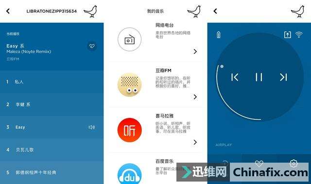 | 无线音箱带给我们的方便之处一是便携,相对来说可移动性高,适合室内和户外运用;二是设备连接运用方便,不管是手机平板还是电视电脑,不管是蓝牙连接、无线WiFi连接还是AUX音频线连接,还有一些无线音箱会加入USB或是TF卡接口的规划,方便位置储存设备的连接运用,也极大的拓展了运用场景。 随着制作工艺的不断进步,无线音箱的体积越来越大,在硬件配置上也越来越高,同时在调音上也越来越成熟,因此也带来了更加出色的试听效果,最大的变化就是360度环绕音效果,使得我们摆脱了试听中固定皇帝位的束缚。所以我们在关心硬件配置(发声单元和被动单元)和功能的同时也要关心硬件规划和最终音质上实际的表现,眼见为实耳听也要为实。至于有人认为的蓝牙音箱音质一定不如有源音箱,那就需要看你用什么设备进行对比,百元的蓝牙便携音箱(比如HP S3000)自然比不过千元的有源音箱(比如漫步者S1000),再者有源音箱也可以是蓝牙音箱,所以对于这种盲目的对比结论没有什么意义。声音并不是什么玄学,多听多对比,时间久了你总会有自己的认知,耳机音箱适合自己双耳听感的就是好的。 关心小鸟音箱主要是因为其采用360度环绕音规划以及多设备组合搭配运用模式。对于小鸟Libratone ZIPP来说, 值得关心的地方首先是硬件基础,2个1英寸高音单元+4英寸低音单元+2个4英寸被动辐射单元的规划使得音质音量上会人有所期待,同时其他值得关心的地方一是支持airplay、DLNA,QPlay等,可以搭配手机、平板、笔记本进行体验;二是360度环绕音可以获得更加出色的试听体验;三是两个以上同类音箱可以组建立体声来获得更加出色的音效,这是越来越多蓝牙音箱中开始普及的进阶玩法;四是同时支持APP管理与播放,玩法上更实用多样;五就是可以更换外套的规划,清洗上更加方便。不过自己最想知道的是,既然是运用的同一个APP、同一个品牌音箱,小鸟Libratone ZIPP是否可以搭配小鸟Libratone TOO来实现组合呢? 产品那些事儿 小鸟Libratone ZIP的硬件配置比较撩人,加上功能太多,所以这里必须有这个总结。 1. 个头巨大,外观规划简洁时尚,可更换外套规划 2. 硬件配置高,特有的2个1英寸高音单元+4英寸低音单元+2个4英寸被动辐射单元组合规划 3. 360度环绕音,试听体验佳 4. 无线音箱,支持无线WiFi联网与蓝牙连接,支持2.4GHz和5GHz联网 5. 支持3.5mmAUX音频输入,支持USB外接设备播放音乐,支持iPhone基座播放模式 6. 自带mic,支持语音通话 7. 支持手动休眠模式与自动省电关机 8. 可以作为移动电源为手机、平板等设备临时充电 9. 触摸屏规划,操控简单 10. 支持同型号音箱组合模式,玩法多样 11. 支持Airplay、DLNA,QPlay等播放模式,运用场景广泛 12. 蓝牙兼容性高,可以搭配手机、平板、笔记本、智能电视机等设备运用 13. 自带APP管理功能,功能丰富,内置百度音乐、喜马拉雅和豆瓣FM,支持国外电台节目 14. 蓝牙配对有些繁琐,不能直接在APP内进行搜寻配对 15. APP未集成煲音箱功能,对于小白用户会略有麻烦 16. 音箱不支持一拖二 17. 机身白色ABS材质部分容易脏也容易清理 18. 不支持与其他类型的同品牌蓝牙蓝牙组合运用,比如libratone TOO 个头巨大有分量 外套随心换且清洗方便 之所以称之为个头巨大,是因为在自己所有的同类柱形印象中是最大的,已经远远超过了UE Megaboom。小鸟Libratone ZIPP体积达到了122mm*122mm *260mm,重量也达到了 1500g,不仅仅是个头巨大,还非常的有分量。 Libratone ZIPP音箱采用的是可更换外套的规划,可以选择不一样的外套进行更换,摆脱了音箱固定外观色彩的束缚,同时也使得外套的清洗上更加方便。外套通过拉链与机身连接,拉链采用的是在衣服上常见的知名品牌YKK,优势就是拉起顺畅舒服,规划牢固,不会经常出现卡慢情况。 外套采用的是针织物工艺规划,手感极为柔软舒适,拉开拉链直接往上褪即可,外套可以水洗。 不过在褪下之前,先要把皮质的提手拆卸。提手通过一颗铆钉与机身固定,拆下不需要工具,只需要旋转拧动铆钉即可。 下图就是音箱上对应铆钉的位置。音箱上半部分采用的是镂空的规划,这里规划有2组1英寸丝膜球顶钕铁硼高音单元,用来确保声音的细节展现和高音的明亮。外壳材质采用的是ABS塑料,在厚度上中等较为结实,同时细节做工处理上较为精细而没有粗糙感。 下方这个位置为2组4英寸被动辐射体,可以隐约看到振膜,这个被动辐射单元总共两个,对称的分布于音箱两侧,用于搭配低音单元实现共振效果,提升低音的表现。在顶部的高音单元和这个被动辐射单元之间便是1组4英寸钕铁硼低音单元,用来配合高音单元带来更加平衡饱满的声音。小鸟Libratone ZIPP的灵敏度为96dB,频响范围为55Hz~20kHz。额定功率25W,峰值功率则可以达到100W。 拆解上有些不方便,所以用一张官方拆解图进行内部单元展示,三种单元的规划位置一一对应到音箱内部的实际位置。 这就是脱去外套的Libratone ZIPP音箱,可以根据自己的喜好选择多种色彩的外套来装点音箱,假装每天都有新音箱或是随着心情去换装,不过外套的价格有些贵,专用外套138元/个,羊毛的则要198元/个。 小鸟Libratone ZIPP把主要的接口规划在了底部的位置,主要有充电接口、3.5mm音频接口和USB2.0接口。电源按键采用的是内凹式规划,可以防止误触,按键清脆,但是开关机需要长按3秒左右。充电接口并没有采用常见的MicroUSB充电接口,而是采用DC接
