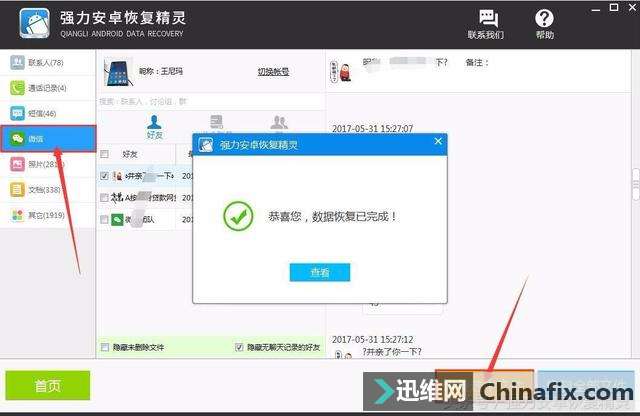 | 微信聊天记录忽然不见了?你是不是经常会发现自己和好友的聊天记录清空了,在查找记录中也无法找出,这是如何维修呢?怎么找回这些记录呢? 记录清空消失不见,还要从微信的机制说起,微信本身是并不支持对聊天记录进行长期保存的,所以如果你清空了最近联系人中的好友,当你再次打开和好友的聊天界面,记录就会所有清空了。 还有一种情况就是清除微信缓存,在清除微信缓存的时候也会同时清空微信聊天记录,当然这里是可以进行勾选是否清空的,如果你没有注意到,那你的记录很可能就是这样不见了。 微信聊记录找回方式: 第一步、首先把需要恢复记录的手机连接到电脑上,打开手机设置中的“USB调试”模式,然后在电脑上下载安装“强力安卓恢复精灵”。 第二步、打开安装好的软件,选择“一键恢复”模式,软件会自动获得手机的基本信息。 第三步、确认信息正确之后,选择“快速扫描”模式,点击“开始扫描”按钮。 第四步、扫描完成后,选择界面左边的“微信”选项,勾选要恢复记录的好友的头像,点击“恢复选中文件”就可以完成恢复了。 按照上面的方式就可以完成手机微信聊天记录的恢复了,运用这种方式不仅可以恢复微信记录还可以恢复手机的短信,照片,联系人等数据,赶快试试吧。 |