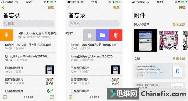 | 作为一名修多专业的文科生,我非常热衷于做笔记,记录知识点、素材和灵感。除了精心制作的纸质手账,我还运用笔记使用来处理大量的信息。在我看来,「笔记流」中最重要的是记录,内容丰富而有条不紊的记录才能保证日后的分析、回溯。我心目中理想的笔记使用,收集的方式、支持的格式务必多多益善,成为我整个工作流里的资料中转站。 谈到笔记使用,总是避不开 Evernote 这头大象,减肥成功的 Evernote 成了许多人的效率之选;大象的粉丝的将其称为「外置大脑」,这是赋予一款笔记使用的殊荣,体现了其收集、记录功能的强大。不过,我却选择将 苹果iOS 的原生备忘录(以下简称备忘录)作为自己的「资料中转站」,用它收集各式各样的内容,以便下一步处理。 苹果iOS 原生备忘录占据了「亲儿子」地位的天时地利,和 苹果iOS 软硬件配合得最为默契,能助我更好地收集灵感。 随叫随到 想要不错过灵感与素材,笔记的开启速度只求更快,点击的步骤但求更少。 备忘录在系统支持上具有特殊的优势,启动方式更灵活。桌面、Widget、控制中心、Siri、分享菜单,或是敲敲 Apple Pencil,都可以召唤出它。有趣的是,对于不运用备忘录的 苹果iOS 用户来说,这总有些「阴魂不散」;而此无处不在的规划恰恰中我下怀,在需要收集资料的时候工具就手边。 苹果iOS 11 的控制中心添加了自定义的按钮,备忘录捷足先登,占据一角。配合了 3D Touch,启动笔记更快了: 不得不说,原生使用有着令第三方羡慕的特权,且不谈 iPad Pro + Apple Pencil 的强大组合,就我所运用 iPhone 的情况而言,就时不时用 Siri 捕捉灵感: 备忘录可以由 Siri 启动,你只要对着手机说话,它会以文字形式记录下所述内容。有一个非常经典的使用场景:我半夜时常做梦,梦得嗨了不幸惊醒,会想记录下方才的奇妙梦境,此时「Hey,Siri,帮我记一下……」,就能抢在梦神把记忆收回之前截下它们。不过从这一侧面可窥见,Siri API 开放程度还显不够,若有一天其他使用也能「Hey」一下,想必是美事一件。 格式通吃 官方这样介绍备忘录:「轻松添加几乎任何内容」 从文字、链接、图片、视频,到图表、文档、手绘,它都可以记录。也许比起拟物化时代,现在的备忘录少了一丝简约美,但带来的是效率提升。作为我的中转站,它接纳更多格式的资料。一定数量、多种多样的内容,将成为今后思考、分析的基础。 苹果iOS 11 带来的新功能也方便了管理笔记,使待处理的笔记不至于凌乱。我总算可以右划置顶单条笔记,或者左划把它归档到特定的文件夹;此外,所有的附件可以透视浏览,使用内搜索也有助于管理这些繁多的内容。 素材收集 我收集的素材多数来自网页,用分享菜单可以妥善记录它们。分享菜单就像 苹果iOS 系统的经脉,文件、文本如同血液在其中流动,备忘录可以依托它实现与其他使用的协作,真正发挥其中转站的作用。 我统一把链接收集在备忘录里,它会解析并显示网站图标、题图,以大小两种不一样风格的卡片呈现,让我一看便知链接指向何处: 出于一些精神洁癖,个人不喜欢使用在功能上的重叠,同类的只会保留一个,可怜 Drafts 就和我说再见了。为了弥补失去的「摘录模板」功能,我做了一个 workflow,便于摘录网页上的一些有趣片段,并用「片段 + 出处」的格式记录在备忘录里。 当然,仅仅收集链接和片段,有时还是不够的,有价值的网页内容我也会存为 PDF 放进备忘录。过去我需要「分享 - 打印 - 预览 - 分享 - 保存」五步才能完成网页收集,苹果iOS 11 的分享菜单中新增了「创建 PDF」选项,更为简捷,顺便还能做个标注。 写作草稿 也许很多读者想不到,我的多数文章草稿都在备忘录里完成。也许有人就会拍案而起,一个连 Markdown 都不支持的使用,谈何写作呢?我倒是觉得,Markdown 很棒,就棒在不强求你的编辑器支持 Markdown。这话听来拗口,理由则是:Markdown 是一种输入语言,而非输出语言。你可以在几乎任何编辑器里运用 Markdown 的标记——只是有的编辑器(比如备忘录)不会渲染罢了——专注于写作,随手把标记打上去,最后把初稿丢进 Markdown 引擎里,让它去渲染出养眼的排版。 用 Markdown 写作,时常需要输入特殊符号,每次切换键盘太不便了。备忘录不支持键盘拓展,没关系,我直接配置了文本替换:连敲几下空格键上方的字母,就能输入你最喜欢的星号与井号。选这一排位置,是为了不假思索地盲打,同时尽量缓解手指酸痛。 在备忘录里写稿,还需要依托两个 workflow 来插入链接和图链。这两者手打起来颇为吃力,备忘录又无快捷操作,只好假借外力。两个 workflow 都是选好预插入的内容,运行后生成 Markdown 格式的链接,直接能在备忘录里粘贴。 但是我极少把备忘录里的草稿直接发布出去,就算是在任由我折腾的博客里(虽说门可罗雀),一般也不这么干——实在太鱼肉读者了。备忘录的一大长处是 iCloud 同步,我在手机上零零星星地写了点东西,转身打开(连上网的)笔记本就能看的它们,复制到 Typora,整理、预览、发布。以前我在手机上频繁运用的笔记使用 Drafts,不幸没有 Mac 版,两头都得人工同步,费事诚然不多,心中却有不快,遂被我打入冷宫。 离线 笔记使用是可丢的,笔记最好也是可丢的。 这一章节或许会让你大跌眼镜,因为表面上看,我要谈的是怎么「丢掉」备忘录。好的笔记使用可称为「外置大脑」,但无论是哪个 App,都没有资格成为我真
