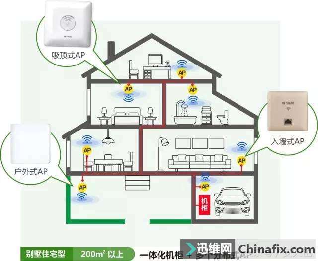 | 住大户型的业主常常会遇到这样的烦恼——无线路由器的无线WiFi信号怎么也无法覆盖到家的每个角落,或是卧室,或是阳台,或是卫生间,或是跃层的二楼,总会留下信号盲区。试过了市面上一个又一个的“穿墙王”、“信号王”,发(电)射(磁)功(辐)率(射)一增再增,却始终无法达到信号全屋覆盖的效果。虽然有电力猫、信号中继器这样的搞定方案,但前者容易受到电力干扰,不够稳定;后者又会降低无线速率,都不是最理想的搞定方案。 除此之外,在人多的情况下,无线WiFi连不上或者速度很慢,这是大户型业主经常遭遇的另一个无线WiFi烦恼。尤其是现在越来越多的智能家居产品,都需要无线WiFi。加上家庭成员的各种智能终端,一个家庭几十个终端需要联网的现象已然不鲜见,采用常见的家用无线WiFi方案往往无法满足高端住宅用户对网络的需要。 针对这部分用户,飞鱼星推出了专用于大户型及别墅住宅的“i-Home全屋无线WiFi”搞定方案。该方案由一个可以直接安装在弱电箱里的一体化网关、智慧家居交换机和若干分布式AP组成,网关自带PoE端口,通过网线即可对分布在住宅不一样地方的AP进行供电。 下面我们来一一介绍这套方案相比较传统的家用无线WiFi方案来说都具备什么样的优点。 01 无线WiFi信号全覆盖 i-Home全屋无线WiFi方案最大的特点犹如其名——信号全屋覆盖。无论是大平层、跃层、还是好几层楼的别墅户型,通过将合适数量的AP进行合理部署,无线WiFi信号就能布满每个角落。无论你是在客厅和家人朋友相聚,还是躺床上刷微信,甚至是在卫生间玩手游,都能尽享无线WiFi满格的、不掉线、流畅慢的冲浪乐趣。 对大户型而言,如果一个路由器不能覆盖所有区域,传统的办法往往是用多个无线路由器分区进行覆盖,各自为政,这会导致无线WiFi不能漫游。同样是信号全覆盖,i-Home方案却能实现无线WiFi漫游。从你步入家门起,无论是在车库还是在屋顶,室内还是室外,都能随时随地进行信号无缝连接,无线WiFi始终保持在线。 02 绿色健康低辐射 无线WiFi是无线信号,一旦经过墙体、家具等障碍物,信号会进行衰减。很多大户型为了获得较好的信号,往往会购买大功率无线路由器,通过增加发射功率的方式来抵抗信号衰减,从而在远端或者多重障碍物(俗称穿墙)之后还能具有一定的信号强度。这就不可避免会在距离路由器近或与路由器之间没有障碍物的区域产生较高的电磁辐射,给住户的身体健康带来潜在危害。 而i-Home方案采用的分布式AP功率小,辐射低,实测电磁辐射值只有同类厂商产品的1/3,彻底避免运用大功率路由器带来的高辐射危害。i-Home全屋无线WiFi方案用绿色环保低辐射的信号来充满住宅每个角落,即便家有孕妇、老人、小孩也可安然无忧。 有图有真相 03 大气美观彰显品质 传统家用无线WiFi方案都属于后装方案,也就是在装修完成后再购买设备进行安装,这常常会导致网络设备和线缆无法隐藏,甚至会杂乱无章,这给装修考究的高档住宅带来了一幅不和谐的画面。而与此不一样的是,i-Home是前装方案,在房屋进行装修时就纳入统一规划并部署,隐藏设备和线缆,不破坏整体装修风格。 ↑ 整齐有序的i-Home → 杂乱无章的路由器 i-Home网关按照家用弱电箱统一标准规划了机箱结构,有效节约弱电箱内的有限空间,将弱电箱变成了网络设备的统一收纳室。分布式AP造型美观,有入墙式、吸顶式,与装修融为一体,彰显品质。装修部署时所有线缆都放在墙体内,整洁有序。房间内看不见任何网络设备,唯见无线WiFi信号满格。 << 滑动查看下一张图片 >> 04 畅享光纤极速网络 随着大带宽时代的来临,光纤进入千家万户,100M几乎成了家庭用户的起点带宽。相信未来运营商还会进一步进行带宽升级,届时200M甚至500M都会遍地可见。 i-Home网关采用高性能企业级处理器,可稳定承载500M光纤宽带,能充分利用大宽带的所有资源,提供全千兆骨干高速网络,带给用户极速感受。更有带宽自动翻倍功能,在运营商线路支持的情况下,100M带宽能享受300M的网速。 其内置的iQoS智能带宽管理技术,能根据用户的网络活动动态调节各个用户的带宽需要,可支持50人同时上网无压力。大户型之家即使开个几十人的party,无线WiFi也能应对自如,让来宾畅享极速网络。 05 智慧家居控制中心 i-Home网关配备1个千兆WAN口、3个千兆PoE LAN口和1个千兆IPTV接口,所有采用全金属屏蔽8芯网口,构成了智慧家居全千兆骨干网络。能满足50多种家用电子产品的网络接入带宽需要,方便业主业务扩展。i-Home还为智能家居设备提供独立的无线WiFi接入SSID,优先保证其网络带宽。 和传统的IPTV需部署专门网线不一样的是,i-Home方案采用一根网线部署到卧室和客厅,既能搞定宽带问题又能搞定IPTV的问题,用户只需将数字电视机顶盒接入AP的网口,即可在任何房间观看极速高清数字电视,十分方便且能节省装修布线成本。 06 安装维护简单便捷 网关作为控制中心,可集中管控多达10个分布式AP,用户无需对AP进行单独配置。AP即插即用,可根据户型大小、布局等选择合适数量的AP,哪里需要安哪里。 手机登录界面 微信管理界面 网关提供一站式配置向导,界面十分简单,只要一步步跟随向导提示进行操作,即便没有网络知识的小白用户也能顺利完成配置。更为便捷的是,用户还可以关心飞鱼星公众号,运用手机微信对家中网络随时随地进行管理。可