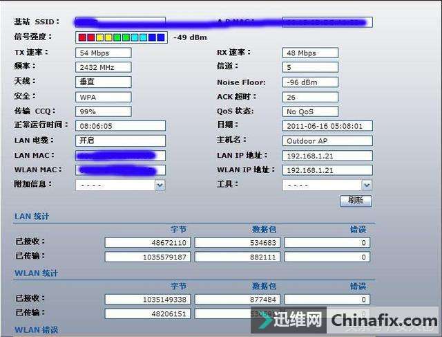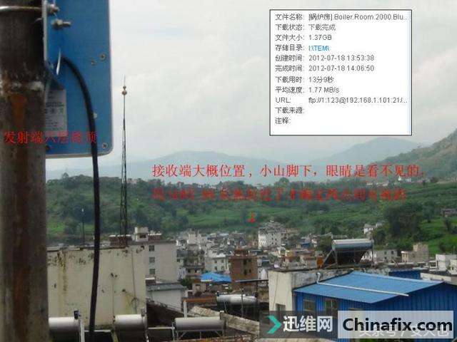 | 无线无线WiFi点对点组网,对环境的要求还是比较高的,而小编一般都是喜欢做可视距离的搭建,就是空旷可见的场景。下面给大家介绍一个实例,稳定运行2年后,由于场景也随着时间变化不得不再次改造升级。 这个实例是在2015年8月份安装的UBNT网桥点对点组网。家到公司直线距离1.3公里,肉眼看不清,借了个数码DV,变焦拉近无任何阻挡,选了一个空旷地的电杆安装增收端,发射端安装在公司的楼顶,54M的普通AP,刚装好第一年下载速度有1.7M/S。 直接把网桥安装在电线杆柱子上: 发射端安装在这里的好处,就是可以防止雷击: 谷歌地图测距有1.3公里: 从发射端看接收端,在图上已经标明: 这两年以来,由于公司与家这1.3公里距离内慢慢修建了民宅楼房,但DV基本可视无阻挡。由于环境变化挺大的,所以网速降到了800kB/S。直到这个星期中间还修了一栋高楼,随着楼层的增高,速度每天都在下降,直到昨天和今天速度从100多K降到了2-30K,衰减到了-92db,完全无法运用了。 所以必须想个办法搞定,于是爬到公司楼顶,想试试用周围的高楼做反射,但是调整发射端天线,对周围的高楼都没有合适的角度。在调试的过程中,在朝着接收端相反的方向转动时,守在家里接收端的朋友忽然报了一个信号-82DB,不知道是哪种故障。再次慢慢旋转,原来发射端对准电信大楼上的铁塔时就能达到-82DB,马上叫守在家里接收端的朋友用360测宽带速度,达到800KB/S,相当高兴,大功告成,经过慢慢微调后固定天线,收工。 其实接收端并没有完全对准电信铁塔,而是对准的公司楼顶,如果调整接收端角度对准电信铁塔,信号会更好,只是接收端安装在电杆上所以嫌麻烦不调了,再说现在900K/S的速度足够了。 总结,原来电信的铁塔可以反射民用的信号啊,相当高兴,不知道是不是因为电信的铁塔上有很多的大型天线。 按这个道理下一次打算在另一个地方测验,看看是不是在县城任何一个地方,只要能看到铁塔就能接收我公司的信号,如果是这样,那我不是可以利用电信铁塔这个发财咯。写在后面的话 之前小编做的无线无线WiFi点对点蹭网方式,几乎都是可视距离的环境,也是最理想的环境。随着时间的变化,附近的楼房肯定会有一定的变化而影响了无线WiFi信号和效果,或者在不可视的环境下搭建无线WiFi组网的话,大家不妨试试文章中提到的方式,就是把天线朝向电信基站,利用发射原理,也许也会获得意外的结果哟。 |
