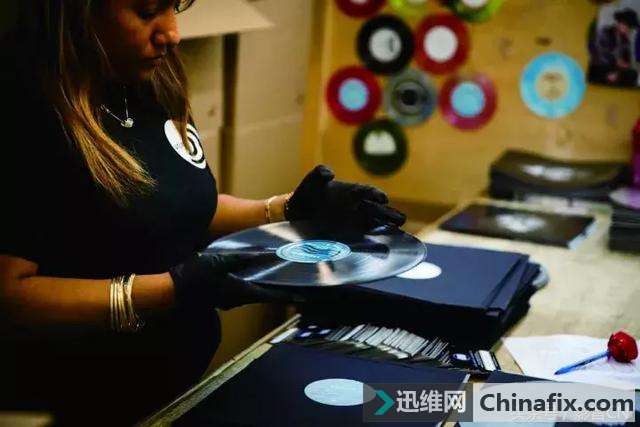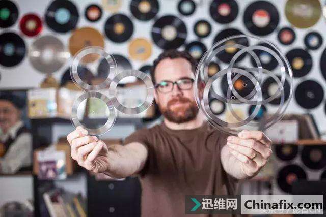 | 回想起早前去影院看的一部魔幻爱情电影,讲述男主角利用跳跃时间线作弊泡女主角的一个青春感情故事,有趣的不是男主角通过何种高新科技装置或者手段,靠的仅仅是一部老旧唱机和一张神奇的黑胶唱片达成穿越的桥段,可以说增添了黑胶几分浪漫情怀。全程最虐我等黑胶爱好者的,还数男主角制作了一张只能正常播放12次的特制黑胶唱片送给女主角,而这张唱片居然是巧克力制成的,黑胶浪漫满分! 缓过神来,这个颇有新意的桥段已经引发网友们强烈的兴趣,“这样的唱片要怎么弄?”之类的提问充斥了各大社交平台。且不论网民是否喜欢黑胶音乐,至少他们对于黑胶唱片有所触动,其实,这亦是当下黑胶回暖的真实写照。黑胶唱片作为近年来全球增速最快的音乐媒体,近半唱片买家都是35岁或以下的青年人,45-54岁的买家只占18%,有趣的是,不少消费者其实并没有收听过自己购买的黑胶唱片,有些人甚至连唱盘都未有。他们一边买唱片,同时继续收听串流音乐。 总的来说,黑胶在主流市场的作用并非音乐载体,更多时候是用于收藏的“纪念品”。于是乎,越来越多的黑胶以非常规的形态发行,基于此,笔者想借这期的影音之外专栏,权当是为了浪漫,分享一些关于非典型黑胶唱片的事儿。 课堂 黑胶制作从零到一 自从黑胶热回潮,大家身边多多少少都接触过黑胶唱片,那么黑胶到底是怎么来的呢?却鲜有了解。在介绍非典型的黑胶唱片之前,我先带诸位了解一下黑胶的生产过程,大家不妨从黑胶唱片的发声原理和制作过程,想一下黑胶到底能做成怎样好玩的东西。 录音:首先,制作黑胶要有音源。以往进入录音室灌录唱片,不仅有歌手,还有一队乐手一同录制,不过现在已经渐渐被“一人乐队”所替代了,可能这是大家比较喜欢老碟的缘故。 母盘制作:一位有经验的工程师,需要从提供的母带或高辨别率的数字文件开始剪辑。而制作母盘之前,需要将录在数字媒介上的音乐导入收到其他维修同行的一台计算机控制的切削机床,机床将依据声音信号在漆面铝盘上刻下一道连续凹槽。刻录唱片母版时,将刻纹刀加热到一定温度,根据驱动电流产生的振动,在胶盘中雕削出声槽坑纹。而车床削减音频漆胶有2种形式:乙酸层或DMM(直接金属母带)铜层,两者的分别在于DMM更适合长过程的录音,像古典曲目或专辑,因需要更多的沟槽。 电镀:为母盘镀一层银,使它变成导电体,把它放到电解槽中电镀,镀镍。几个小时之后,母盘上面镀了一层厚厚的金属。从电解液中取出母盘后,通过清洗,将母盘与镀上的金属盘分离,这时母盘的使命已经结束,基本就毁坏了。生成的新盘子是原来盘子的“反面”,也就是说原来盘子“凹”的地方,在新盘子上是“凸”的。这个盘子我们把它叫做“父”模板。 注意:母盘一般都是单面的,也就是说每张唱片要有两张母盘,分别对应唱片的两个面。 压制:黑胶材质——乙烯基塑胶(Vinyl),被运送到压制车间时还是小颗粒,然后再放置在压模上施加高压变成一个小“冰球”或“饼干”,重约200克。压模之间的“冰球”,被机械放置在母版的每一侧,然后按下关闭,在150bar高压下进行压制,20秒为一个记录。接着,唱片将运输到一个流水线自动化储存系统(校对机),它们将冷却一夜,至少8小时。在降温期之后,唱片准备包装。 当黑胶唱片不是Vinyl 它其实还是一张唱片! 黑胶在英文里也被称为Vinyl,是因黑胶已稳定采用乙烯基塑料进行唱片压制,唱片的颗粒变细,微小的振动也能录制下来,这样高保真的效果进一步体现。从上面的制作工序可知,其实黑胶制作其材料也可以是多样化的,有早期的虫胶,也有苏联排外时期的X光片,甚至纸盒等等,同理,巧克力黑胶只需音源和收到其他维修同行的一台刻录机便可制作成型,再把载体换成巧克力,不过,这无论对于发声原理还是制作工艺都丝毫没有影响。 黑胶是通过碟片上模拟声波振动而刻制,用来储存声音信息的不平直的坑槽,微小到难以用肉眼看出,当唱针划过,坑槽带动唱针把振动的储存解读为电信号并输出,说到这里,很多人喜欢听黑胶正是因为这样的刻录手法模拟出最贴近灌录的声音,而且不会像CD经过限压提压的处理,导致某些超高频段缺失而发出点到即止的数码声,此处正是黑胶声柔和之奥秘。 动手做盘的黑胶爱好者 同样作为黑胶狂热爱好者的迈克尔·迪克森(Michael Dixon),与喜欢收藏黑胶唱片的爱好者不一样之处在于,他热衷于自己动手制作黑胶唱片,而且他不按常规出牌,有些材料可能是他在路边发现的废弃品,或者在旧货店里收购的现成物品,总之不拘一格,而制作的背后,靠的是收到其他维修同行的一台1940年代出土的老式刻录车床。 迪克森的实验项目之一是一个被他叫做“欧拉圈”(Eulerian Circles)的系列唱片,这些黑胶唱片上有好几个孔眼,看起来像维恩图解(Venn diagram)。把唱片的不一样孔放入播放器,它会放出完全不一样的曲目。“在制作的时候,你需要很清楚地知道哪些凹槽围绕的是哪个孔,因为如果不小心出错,所有的歌都会乱套。”迪克森说。这个发现也是出于巧合,“简单地说是有次我不小心把孔给钻大了,但我又不想把150美元的材料扔掉,然后我就在左右两边各钻了正确大小的孔,想等下再试试能不能矫正切割。结果就是这些有着重叠凹槽的魔幻唱片。”迪克森说。 如此奇思妙的他也收到了来自不少独立艺人的合作请求,
