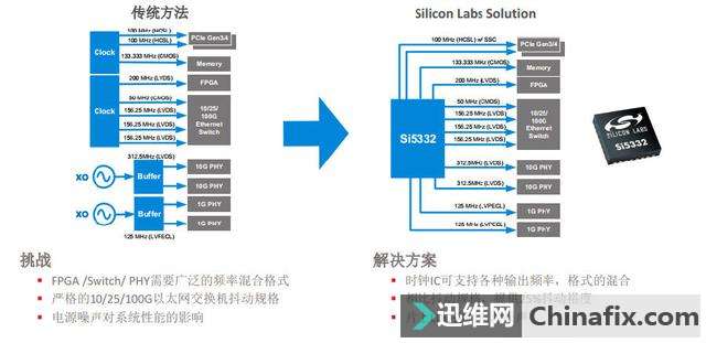 | 时间飞逝,科技进步速度之快已经超乎普通人的想象,通讯世界更是日新月异。从2012年左右进入4G时代,人们切身体会到网络时代的快速与便捷,而现如今4.5G正运筹帷幄,再过3年5G全面商用,到那时人们的生活又将是天翻地覆的变化。这种变化对于消费者来说意味着更加轻松的生活、工作和娱乐,但对于厂商来说,则是机遇和挑战,对时钟器件更甚。 新器件替代多个时钟芯片和VCXO 近日,Silicon Labs(亦称“芯科科技”,NASDAQ:SLAB)针对4.5G和基于以太网的通用公共无线电接口(eCPRI)无线使用,推出了全新的系列高性能、多通道抖动衰减时钟产品——新型Si5381/82/86系列时钟产品。新型Si5381/82/86系列时钟产品利用Silicon Labs经过验证的DSPLL技术提供先进的时钟搞定方案,在单芯片中集成了4G/LTE和以太网时钟。 Silicon Labs时钟产品高级营销总监James Wilson表示:“HetNet和eCPRI设备部署正在为5G铺平道路。通过选择Silicon Labs的Si538x无线时钟,无线系统规划人员可以将小型蜂窝网络、DAS、μ-BTS以及其他规划的成本、功耗和复杂性降至最低。Silicon Labs基于DSPLL的Si538x时钟是业界首款将低相噪4G/LTE时钟和低抖动以太网时钟结合在一起的时钟IC。” 估计到2021年,全球将拥有4.6B互联网用户,27.1B网络设备和连接,而82%的总IP流量将会以视频形式传输。在这之前,服务提供商将通过部署小型蜂窝网络、超小型蜂窝网络、DAS、μ-BTS和回传设备来构建5G网络。通过增加室外网络覆盖和容量,改善室内信号接收,和现有的4G/LTE网络相辅相成。随着运营商慢慢转移到运用基于以太网的eCPRI前传网络来增加基带单元与远程无线电头之间的前传连接的容量,他们开始在网络边缘部署异构网络(HetNet)设备。而成本、功耗和尺寸限制成为HetNet设备硬件规划人员要面临的特殊挑战。 Silicon Labs此次推出的这些高集成度的时钟产品可替代通常在高要求使用中所需的多个时钟器件和压控振荡器(VCXO),这些使用包括小型蜂窝网络、分布式天线系统(DAS)、μ-BTS,基带单元(BBU)和前传/回传设备等。通过在单个IC中结合4G/LTE和以太网时钟,Si538x系列产品大大简化了HetNet设备中的时钟生成,可提供与竞争方案相比功耗降低55%、占板面积减小70%的突破性搞定方案。 小型蜂窝网络和DAS设备是“一体化”基站,需要为4G/LTE收发器、基带处理和以太网/Wi-Fi连接提供参考时钟。Si5386时钟的低相噪DSPLL以紧凑的单芯片规划取代了分立时钟IC、VCXO和环路滤波器件。此外,Si5386时钟集成了五个MultiSynth小数时钟合成器,可以非常方便的提供以太网和基带参考时钟。这种现代化的单PLL+ MultiSynth架构规划,相对于依赖多个PLL和分立振荡器的搞定方案,提供了卓越的可靠性。 搞定10/25/100G严格要求的时钟规划搞定方案 Silicon Labs推出全新的高性能时钟发生器系列产品,特别针对10/25/100G使用提供业界最高集成度的时钟搞定方案。在诸多如超大型数据中心交换机、服务器、储存、网络等使用中,有很多如以太网交换机、网络处理器、服务器SoC和FPGA等,在单个IC中集成了数据路径处理、处理器功能和多个串行/解串器(SerDes)。因此,这些设备需要多样化的参考时钟组合。10/25/100G SerDes具有严格的抖动要求,通常需要具有<300fsrms最大抖动性能的时钟。处理器锁相环具有较低的抖动要求,但经常运用扩频时钟来最小化电磁干扰(EMI)。 与运用石英振荡器、缓冲器和固定频率时钟发生器的传统时钟搞定方案不一样,Si5332时钟在单芯片器件中产生所有SerDes、处理器和系统时钟,同时提供显著的抖动余量,使系统开发人员能够有把握地简化时钟树。Silicon Labs时钟产品高级营销总监James Wilson表示:“超高速数据中心正在快速从10G迁移到25G、50G和100G以太网,以便加速数据传输和提升网络效率。这波新投资周期促使设备制造商将交换机和接入端口升级到更高速率,并采用更高性能的时钟搞定方案。通过选择Silicon Labs的Si5332任意频率时钟芯片,系统规划人员能够优化其时钟树规划,且不影响时钟性能。” 新型系列产品支持PCI Express,这是连接微处理器、网络、储存和内存的长期主流标准。PCI-SIG组织最近推出了PCI Express 4.0(0.9版本),支持16GT/s数据速率。Si5332系列产品完全符合PCI Express 4.0标准,同时为PCIe Gen 4规格提供60%的抖动余量。其他行业联盟,包括CCIX、Gen-Z、NVLink和OpenCAPI,正在开发支持高达25GT/s速率的串行互连替代技术。除了要求低抖动时钟之外,其中一些搞定方案还需要展频参考时钟。Si5332系列产品提供支持双独立展频通路的多功能搞定方案。在每个输出基础上启用展频时钟生成,这使得单个时钟器件能够同时支持展频和非展频时钟的混合模式。总而言之,这些特点使得Si5332系列产品成为高速串行互连参考时钟的最佳搞定方案。 Si5332时钟发生器专门用于简化时钟树规划,且不影响性能或功耗。新型系列产品集成了两个MultiSynth小数时钟合成器和五个独立的整数分频器,无需运用固定频率时钟和振荡器来产生时钟。Si5332时钟具有230fs rms抖动性能,提供优于竞争搞定方案2-5倍的低抖动性能,同时提供10/25/100G SerDes时钟要求。Si5332时钟集成了大量片上电源调节器,无需竞争搞定方案通常所需的片外昂贵的分立低压差(LDO)稳压器。基于MultiSynth架构的Si5332系列产品同样针对电源效率进行了优化,功耗比竞争对手低50-60%。 价格和供货 Si5381/82/86无线时钟现已提供样片,计划于12月份批量