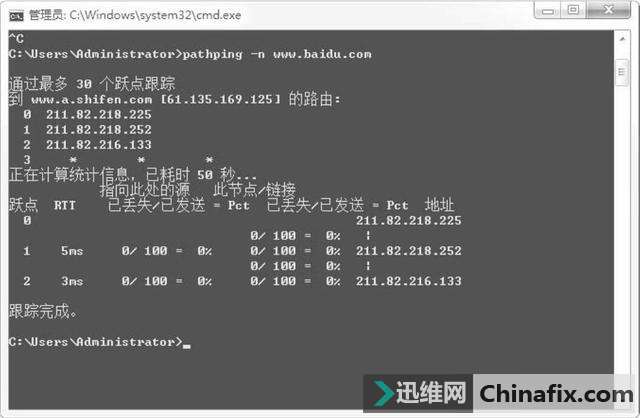 | Win系统自身提供了一些功能比较简单的IP网络连通性测验工具——Ping。IP网络连通性测验工具可以让管理员运用一种工具完成多种任务,例如IP-Tools、WS_Ping ProPack和Netdiag等软件。 2.1.1 IP网络连通性测验——Ping 在网络不通或传输不稳定时,首先想到的就是运用Ping命令测验。Ping内置于Win系统的TCP/IP中,无需安装,运用简单但功能强大。Ping命令运用ICMP来简单地发送一个数据包并请求应答,接收请求的目的主机再次运用ICMP发回同所接收的数据一样的数据,于是Ping便可对每个包的发送和接收报告往返时间,并报告无响应包的百分比,这在确定网络是否正确连接,以及网络连接的状况(包遗失率)时十分有用。 1. Ping命令格式 Ping命令的使用非常广泛,不仅可以测验与其他计算机的连通性,还可以用来测验网卡是否安装正确、通过主机名查看IP地址、通过网站域名查看IP地址等。通常情况下可以通过如下三种命令格式测验到对方的连通性。 ■ Ping IP地址 Ping IP地址是局域网中最常用的操作,主要用来检测是否可以与对方计算机连通,对方计算机是否正在线等。 例如,我们来测验与一个IP地址为211.82.218.254的计算机是否能够连通。选择“开始”→“运行”选项,打开“运行”对话框,在“打开”文本框中键入cmd。 “运行”对话框 单击“确定”按钮进入命令提示符状态,键入如下命令: ping 211.82.218.254 按Enter键,Ping命令便开始测验,如果有返回值的话,说明对方计算机当前在线,并且可以与该计算机连通,并且通过时间和TTL(生存时间)值,还可以了解到网络的大致性能。time值越大,说明运用时间越长;TTL值越小,则说明网络延时越大,并且有丢包现象。 测验与对方的连通性 如果在运用Ping命令时,返回“请求超时”的信息,则说明不能与该IP连通,有可能是对方计算机设置了不返回ICMP包,或者与对方计算机的网络不通,又或是该计算机根本不在线。 不能Ping通 提示 如果在运用Ping命令时,返回的信息有时正常而有时却显示为“请求超时”,说明自己或对方的网络不稳定,出现丢包的现象,此时可检查网络是否出现了问题。 ■ Ping计算机名 如果只知道对方的完整计算机名时,可以Ping命令测验到对方的连通性,同时还可以得到对方计算机的IP地址信息,命令格式为: ping计算机名 例如,现在知道局域网中的收到其他维修同行的一台主机名为“liuxh-pc”的计算机,用Ping命令测验,如果返回time和TTL值,说明与该计算机的连接正常;而在Ping一个主机名为“liuxh”的地址时,提示“Ping请求找不到主机Liuxh。请检查该名称,然后重试”(或“Ping request could not find host tjl. Please check the name and try again.”,说明找不到该计算机或网络中无此IP地址,或无法与该计算机连通。 Ping计算机名 ■ Ping域名 在浏览网页时,经常会遇到网页不能正常打开的情况,此时就可以运用Ping命令检查本地计算机到Internet的连通性,同时也可以得到该网站的IP地址。 例如,现在要测验一下本机与www.hsnc.cn)的连通性,可在命令提示符中键入如下命令: ping www.hsnc.cn 按Enter键,在命令提示符中就会返回测验信息。 Ping网站域名 2. Ping命令使用 网络中可能出现的问题是多种多样的,但是排除问题就要按部就班地检查,认真检查每一个可能出错的环节,例如本地网卡、网络协议、本地网络电缆,以及到远程计算机的连接等。这些工作都可以由Ping命令完成。 ■ 测验网卡 如果计算机不能与其他计算机或Internet正常连接,首先就要检查本地网卡是否正常。网卡虽属非易损性硬件,但是有可能由于软件冲突造成不能正常工作,例如,驱动程序安装不正常、没有安装必需的通信协议等,可运用“ping本地IP地址”或者“ping 127.0.0.1”进行测验。 通过该测验,可以得到以下信息。 (1)是否正确安装了网卡 如果测验成功,说明网卡没有问题;如果测验不成功,说明该网卡驱动程序或TCP/IP没有正常安装。通过“控制面板”打开“设备管理器”,在“网络适配器”列表中查看网卡是否有一个黄色的“!”。如果有,就需重新安装驱动程序。 提示 127.0.0.1是本地网卡的默认IP地址,无论网卡中是否分配了IP地址,该地址都会存在,且仅在本地计算机中有效,在网络中无效。 (2)是否正确安装了TCP/IP 如果测验成功,说明网卡TCP/IP没有问题;如果不成功并且网卡驱动程序安装正常,则应从“控制面板”中打开“网络”属性,查看是否安装了TCP/IP。如果没有安装,则在安装TCP/IP并 正确配置后,重新启动计算机并再次测验。 (3)是否正确配置了IP地址和子网掩码 如果“ping 127.0.0.1”成功,但Ping本地IP地址不成功,说明没有正确配置IP地址。应在“控制面板”中打开“本地连接”属性,检查IP地址和子网掩码是否设置正确,并进行正确配置。 ■ 测验局域网连接 通过Ping局域网内其他计算机或服务器的计算机名或IP地址,可测验同一网络(或VLAN)的连接是否正常。 (1)检测IP地址和子网掩码设置是否正确 如果局域网内的计算机Ping不通,应在“控制面板”中打开网络连接属性,检查IP地址和子网掩码是否设置正确。如果设置不正确,应重新设置后再进行测验。 (2)确认网络连接是否正常 如果IP地址和子网掩码设置成功,但仍Ping不通,应当对网络设备和通信介质逐段测验、检查和排除。 ■ 测验与远程主机的连接 通过Ping命令可测验与远程主机的连接是否正常,尤其是与Internet的连接。该测验可通过Ping远程主机的IP地