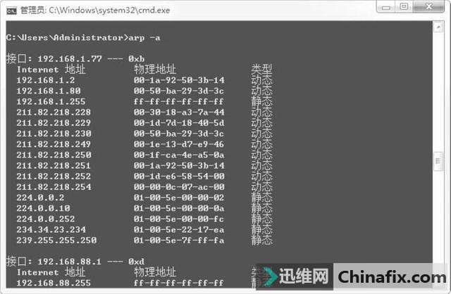 | 获得远程计算机MAC地址——nbtstat Nbtstat命令是Win下自带的NetBIOS管理工具,用于显示本地计算机和远程计算机的基于TCP/IP的NetBIOS统计资料、NetBIOS名称表和NetBIOS名称缓存。Nbtstat可以刷新NetBIOS名称缓存和注册的Win Internet名称服务(WINS)名称。如果运用不带参数的Nbtstat命令,将会显示有关该命令的帮助信息。 而NetBIOS(Network Basic Input Output System,网络基本输入输出系统),是局域网(LAN)上的程序可以运用的使用程序编程接口(API),几乎所有的局域网计算机都是在NetBIOS基础上工作的。NetBIOS为程序提供了请求低级服务的统一的命令集,这些服务是管理名称、执行会话和在网络节点之间发送数据报所要求的。 1. 使用实例 ■ 实例1:如果要显示计算机名为HSHN的远程计算机的NetBIOS名称表。 在命令提示符下键入如下命令行: nbtstat -a HSHN 按Enter键运行后的结果! 利用主机名查看远程主机的NetBIOS名称表 由此可以知道,远程计算机NetBIOS名的HSHN属于MSHOME域或组,同时能获得远程计算机的网络适配器的MAC地址(00-50-BA-29-3D-3C)。 ■ 实例2:显示IP地址为192.168.0.1的远程计算机的NetBIOS名称表。 在命令提示符下键入如下命令行: nbtstat -A 192.168.0.1 按Enter键运行后的结果。 利用IP地址查看远程主机的NetBIOS名称表 该命令的作用和实例1中的命令作用相同,这里不再赘述。 ■ 实例3:显示本地计算机的NetBIOS名称表。 在命令提示符下键入如下命令: nbtstat -n 按Enter键,运行后的结果。 显示本地计算机的NetBIOS名称表 从执行结果中可以得知,该计算机的NetBIOS名称、所在域(或工作组)以及当前登录的用户等信息。如果执行如下命令: nbtstat -a HSLH 同样可以得到上述结果(从该图中可得知,本地计算机的NetBIOS名为HSLH)。 ■ 实例4:显示本地计算机NetBIOS名称缓存的内容。 在命令提示符下键入如下命令: nbtstat -c 按Enter键运行后的结果显示所示。 显示本地计算机NetBIOS名称缓存的内容 从上面的运行结果中可以看出,本地计算机刚刚和IP为192.168.0.3的计算机连接过。因为NetBIOS的缓存里储存的IP是对方已经信任的计算机IP,因而这也给网络安全带来了隐忧。 2. Nbtstat命令详细参数 Nbtstat命令的语法格式为: nbtstat [-a remotename] [-AIPaddress] [-c] [-n] [-r] [-R] [-RR] [-s] [-S] [Interval] ■ 参数说明 -a remotename:显示远程计算机的NetBIOS名称表,其中,remotename是远程计算机的NetBIOS计算机名称。NetBIOS名称表是运行在该计算机上的使用程序运用的NetBIOS名称列表。 -AIPaddress:显示远程计算机的NetBIOS名称表,其名称由远程计算机的IP地址指定(以小数点分隔)。 -c:显示NetBIOS名称缓存内容、NetBIOS名称表及其解析的各个地址。 -n:显示本地计算机的NetBIOS名称表。Registered中的状态表明该名称是通过广播或WINS服务器注册的。 -r:显示NetBIOS名称解析统计资料。在配置为运用WINS的Win计算机上,该参数将返回已通过广播和WINS解析和注册的名称号码。 -R:清除NetBIOS名称缓存的内容并从Lmhosts文件中重新加载带有#PRE标记的项目。 -RR:重新释放并刷新通过WINS注册的本地计算机的NetBIOS名称。 -s:显示NetBIOS客户和服务器会话,并试图将目标IP地址转化为名称。 -S:显示NetBIOS客户和服务器会话,只通过IP地址列出远程计算机。 Interval:重新显示选择的统计资料,可以中断每个显示之间的Interval中指定的秒数。按“Ctrl+C” 组合键停止重新显示统计信息。如果省略该参数,Nbtstat将只显示一次当前的配置信息。 /?:在命令提示符中显示帮助。 注意 Nbtstat命令行参数要区分大小写。 只有当TCP/IP在网络连接中安装网络适配器属性的组件时,该命令才可用。 MAC地址解析工具——Arp ARP(地址转换协议)是TCP/IP协议簇中的一个重要协议,通常用来确定对应IP地址的网卡物理地址、查看本地计算机或另收到其他维修同行的一台计算机的ARP高速缓存中的当前内容,以及用来将IP地址和网卡MAC地址进行绑定等。 1. 查看IP-MAC对照表 在系统的ARP高速缓存中,记录了IP与MAC地址的对应数据,如已绑定的IP地址与MAC地址等,可通过arp -a命令来获得这些信息,如图所示,列出了IP地址与MAC地址的对应信息。其中,“静态”表示该数据是静态的,“动态”表示为动态数据,动态数据在下次启动时会消失。 运行arp -a命令 按照默认设置,ARP高速缓存中的项目是动态的,每当发送一个指定地点的数据报且高速缓存中不存在当前项目时,ARP便会自动添加该项目。一旦高速缓存的项目被输入,它们就已经开始走向失效状态。例如,在Win NT网络中,如果输入项目后不进一步运用,物理/网络IP地址对就会在2~10 min内失效。因此,如果ARP高速缓存中项目很少或根本没有时,并不一定是网络问题导致的,通过另收到其他维修同行的一台计算机或路由器的ping命令即可添加。所以,需要通过ARP命令查看高速缓存中的内容时,可先运用ping命令测验到该计算机的连通性。 2. 绑定IP与MAC地址 在管理网络时,管理员经常会遇到IP地址冲突的问题。这是因为有些用户乱设IP地址,造成冲突。如果与服务器的IP地址相冲突,还会造成网络问题,其他用户将不能与服务器正确连接。有些用户为了上网,还会盗用IP地址。为防止IP地址冲突以及IP地址盗用,可以运用ARP命令将IP与MAC地址一一对应起来,这样,只有网卡设置了被绑定的IP地址才可正常运用,从而有效地避免网络问题。 例如,我们要将IP地址192.168.76.1与MAC地址00-50-56-c0-00-08的网卡进行绑定,可在命令