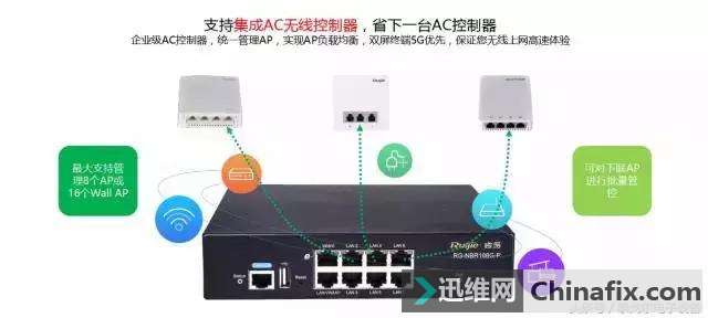 | 01 别墅和大户型一直都是我们梦寐以求的居住场所,当我们真的住进了别墅或者大户型之后,心中只有一个字“爽”,不过,当爽完之后却发现我们家里的无线不是断断续续的,就是时候根本没有信号。没有办法就装了一个又一个路由器,可是却还是治标不治本,尤其是我们在做别墅娱乐场所的朋友们更是为此伤透了脑筋。 02 而造成别墅的无线网络的难题大致分为以下几点: 1、体验差,美观度差,管理麻烦 2、别墅或复式楼的户型,需要多台无线路由,每层独立部署网络,无法快速部署; 3、无线网络无法漫游,楼上网络不稳定,信号无法所有覆盖 4、维护管理无从下手,出问题都要请专业人士来 5、现有设备影响整体的美观度 6、家中智能终端越来越多 手机、PAD、电视、监控探头,智能家电等等,普通路由器难以支 撑这样的并发性能, 03 而锐捷网络为搞定别墅、精装房、SOHO办公网络难题,专门研究推出RG-NBR108G-P。RG-NBR108G-P产品是锐捷网络专为 精装房,别墅,SOHO办公量身定制的多功能网关,集成了高性能网关、AC无线控制器和PoE供电交换机。设备不仅拥有高性能NAT、PPPOE拨号、精准流控和安全等功能,而且还集成AC无线控制器和7个POE供电口,凭借着丰富的功能,RG-NBR108G-P能够极有效的优化精装房,别墅,SOHO办公等场所的网络,它通过灵活的互联网接入方式、丰富的使用管理和高性能NAT等手段,轻松驾驭家中所以智能设备,确保网络环境的稳定与流畅,保障用户网络运用的体验。搭配锐捷网络墙面AP等产品即可组建无线网络全覆盖无死角,产品还提供了免费的云管理,让维护更便捷,性价比更高。 04 锐捷网络RG-NBR108G-P多功能一体网关功能概述: 1、既是路由器又是无线控制器,能统一管理最多16台锐捷墙面AP产品,组建无线网络;7个LAN口均支持标准PoE供电,单口输出功率满足墙面AP供电需要;适合别墅、精装房、小企业、办公室等环境搭建无线网络,无需额外购置AC和PoE交换机。 2、支持DPI、DFI等使用协议识别手段,RG-NBR108G-P可识别市面上主流的使用的识别,可针对不一样的使用进行上、下行的带宽管理,合理分配迅雷、游戏、视频、网站访问、办公等各类使用的带宽大小和优先级,保障用户上网的体验。 3、支持固定地址、拔号上网,支持运用一个接口和账号做多pppoe拨号,灵活接入和扩容,同时RG-NBR108G-P内置运营商地址库,在多运商接入时,避免跨运营商访问,使出口带宽充分利用、提供更好的链路质量。 4、通过多种内在的安全机制可有效防止和控制网络流量攻击,可对内网用户进行并发用户数限制、防止大流量攻击。支持自动检测无线终端类攻击行为,ICMP攻击、TCP SYN攻击时可加入黑名单,支持流量存在问题的用户进行黑名单管理。能够识别DDOS攻击。 5、大多数Wi-Fi设备缺省只支持运用2.4GHz频段,而5GHz频段上(802.11a/n/ac)却能获得更大的吞吐性能。基于频段的负载均衡,使支持双频的用户终端优先接入5GHz频段,在不增加成本的前提下,能够增加大约30-40%的带宽利用率,保证了用户的无线上网高速体验。达到专业级无线漫游体验效果,小于50毫秒的无感知切换,实现漫游过程中不丢包;智能5G优先+空口调度技术在高密度和复杂的无线WiFi环境中保障最佳体验 6、过锐捷提供的免费云管理服务,可统RG-NBR108G-P功能支持WEB化界面管理,支持DDNS功能,便于用户从内外网登陆设备管理。同时通一监控设备状态,极大的简化运维的工作。 RG-NBR108G-P多功能一体网关 |