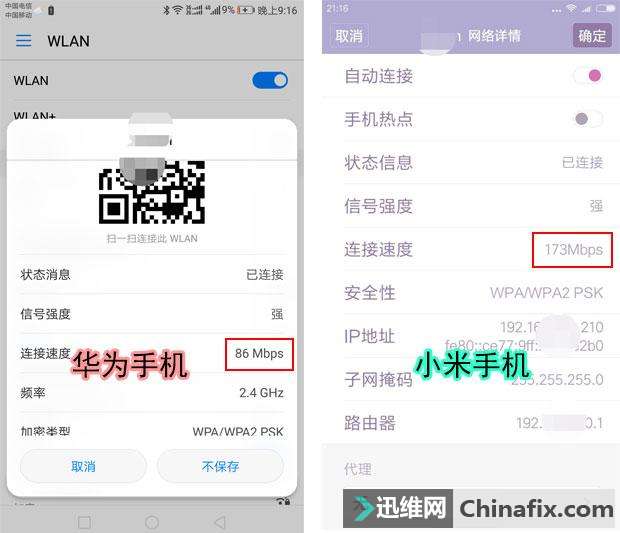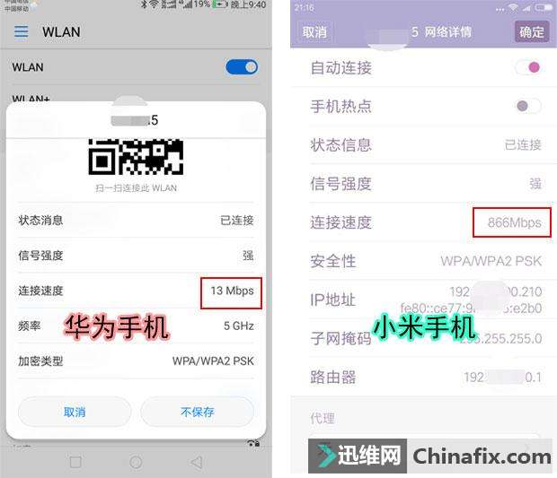 | 华为荣耀8,连接斐讯K2P的5G信号,网速正常,但是wlan详情里面,连接速度只有13Mbps?Are you OK? 这是我华为手机的wlan详情: WTF?逗我呢?堂堂的千兆路由器,堂堂的5G信号,天线距离手机不超过20cm,你连接速度给我13M,还bps!!! 难道是我眼花?正好家里还一部小米4C,拿来试一下。连接5G,我了去。不看不知道,一看吓一跳啊。 情何以堪啊! 绝逼活生生的漏洞啊。 不放心,我又测验了一遍。 2.4G联网信号显示对比图 5G联网对比图 当然这应该只是连接速度的数据错误或者数据显示错误,华为手机联网还是很稳定的。我又用测速软件测验了一下两部手机的联网速度。 测速对比图 这个数据严重和华为的连接速度不成比例啊,小米的虽然有差距起码也都算跑满了呀。 哎,难道小米真的能甩华为?两部手机不是一个层次的呀~ |