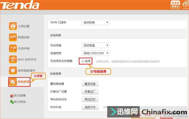 | 本文介绍腾达(Tenda)无线路由器如何防止无线网络被蹭网?从被蹭网的危害到如何判断我的无线被蹭网了,然后教你如何设置路由器防止被蹭网。 登录路由器管理界面查看显示当前连接的客户端数目,查看方式:登录管理界面点击“网速控制”设置页面,此页面显示了所有已连接过路由器且未被移除的设备(在线或离线)。如下图如示: 例如:在您的运用环境中,确认只有2个客户端连接了路由器,但列表显示3个客户端信息,说明无线网络被蹭网了。 1、设置无线加密 登录路由器管理界面点击“上网设置”—“无线加密”—“无线密码”(无线加密模式默认是WPA/WPA2,无线密码建议用字母、数字和符号组成,不能少于8位),如下图所示: 2、隐藏无线名称 除了无线加密,隐藏SSID也是一种有效的方式,隐藏SSID后,其他人搜不到您的无线网络名称,可以有效防止陌生无线设备的接入,设置方式:登录路由器管理界面点击“系统管理”—“无线信号名称隐藏”— “启用打勾”—“确定”,如下图: 注意事项: 无线路由器隐藏无线名称(SSID)后,您的无线终端也会搜不到无线信号,如果想要连接路由器的无线WiFi,需要在客户端手动添加路由器正确的无线WiFi 名称/密码进行连接。 电脑手动添加无线名称连接方式,请点击:win7系统下如何手动添加配置文件连接无线网络? 3、关闭路由器DHCP服务器 路由器DHCP服务器默认开启,关闭DHCP 后,路由器不能给连接的设备自动分配IP 地址,改用手动分配IP地址,并且采用一个冷门的IP地址段,这样的话,即便他人pojie了你的路由器无线网络,也无法获得IP地址连接上了。设置方式:登录路由器管理界面点击“系统管理”—“DHCP服务器”— “取消启用勾选”—“修改登录IP地址”—“确定”,如下图: 注意事项: 无线路由器关闭DHCP服务器后,连接的设备需手动配置IP地址信息才能连接上网。 电脑手动指定IP地址方式,请点击:如何给电脑指定ip地址? 4、mac地址过滤 注:1 仅禁止:仅禁止添加到列表中的MAC地址访问网络 2 仅允许:只允许添加到列表中的MAC地址访问网络 |