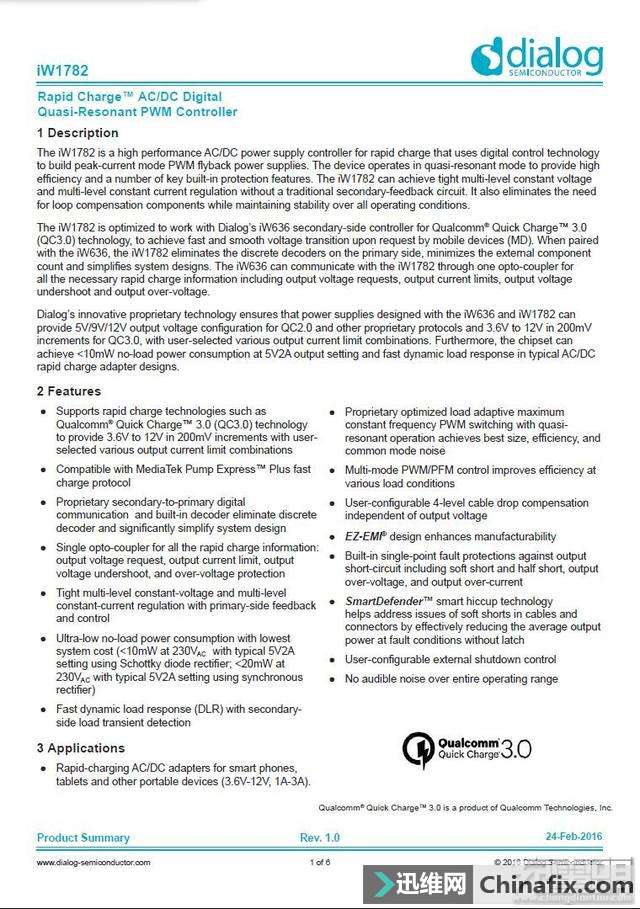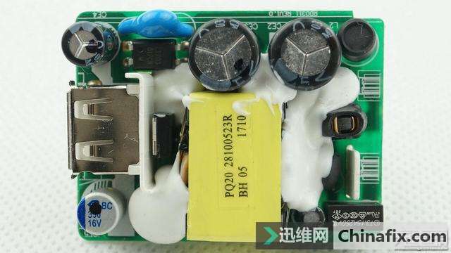 | 有幸拆解以工匠精神著称的锤子出品的QC3.0快充技术电源,我个人非常期待! 电源外壳上的螺纹让我不禁想起了–登机箱。 电源支持QC3.0最大输出功率18W。 单USB输出。 锤子果然出手不凡,取出电路给人第一感觉就是精致! 电路板正反面,工整、简洁。元件布局合理紧凑。必要部分都有胶水固定。 初级与次级之间绝缘塑料片。 市电输入端保护与EMI电路非常完善。 初级主电容运用两颗并联,单颗规格400V15微法。 蓝色抗高频干扰电容。 输出滤波部分,固态与电解电容两颗搭配运用,固态电容来自肇庆绿宝石电子科技股份有限公司(简称“绿宝石”),单颗规格:16V 330微法,电解电容16V470微法。 USB插座与磁铁无缘。 817CN光耦。 IW1782配合自家QC3.0识别IC,可以组成一个效率极高,功能强大的QC3.0电源适配器。 型号为U7N65的初级主开关管。 来自威兆半导体型号为Vs 6018as同步整流MOS。 红框是QC3.0识别IC,橙框是dialog自家的同步整流控制器。 运用POWER-Z侦测出此电源支持QC2.0与QC3.0模式输出。 全家福。 |