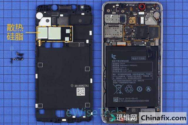 | 乐视S3 (全网通版32GB)采用联发科20 nm工艺的Helio X20十核处理器,3G内存+32G闪存的储存配置。显示屏大小为5.5英寸,辨别率为1920x1080,显示屏类型为TFT。相机方面,前置摄像头像素为800万,后置摄像头像素为1600万。手机采用金属后盖,支持24W(8V 3A/12V 2A)乐闪充,支持红外遥控传感器、霍尔传感器、光线距离传感器、加速度传感器和陀螺仪传感器。 乐S3取消了3.5mm的耳机接口,仅靠USB Type-C接口来完成充电+耳机的功能,另外,手机配件中包含一根USB Type-C转接3.5mm耳机口的转换线,通过乐视的CDLA音频技术(全程数字无损音频),配合CDLA耳机,实现数字信号的无损传输。下图为转换线图片: 屏幕在息屏状态下边框极窄,但点亮屏幕时,黑边还是较为显著,黑边宽度为2.86mm。 外壳上未运用螺丝,故从屏幕开始拆解,屏幕与金属后盖的边缘直接贴合。 加热屏幕后,用吸盘打开屏幕。打开屏幕后可以看到屏幕上下两端涂有胶条,其上下胶宽为3mm,两侧胶宽为1mm。屏幕与主板BTB接口由一块金属盖固定连接,内支撑正面贴有石墨片。 固定内支撑与后盖运用了19颗十字螺丝,除此之外还通过卡扣固定。取下内支撑,可以看到帮助主板散热的硅脂贴于内支撑上。 主板背部屏蔽罩上贴有石墨片,电池通过两条易拉胶固定。 电池固定在手机的后盖上,容量为3000mAh,厂商为飞毛腿。在电池下方的副板,通过胶固定在后盖上。 后置摄像头像素为1600万,五镜式镜头,支持PDAF对焦,配备双色温闪光灯。 手机支持指纹识别技术,传感器模块大小为11.5x11.5x0.9mm。 主板正面主要IC(下图): 红色:Skyworks-SKY77643-31-频射芯片 橙色:STMicroelectronics-LSM6DS33-加速度+陀螺仪传感器芯片 黄色:TI-BQ25892–快充技术芯片 蓝色:Media Tek-MT6631N-无线WiFi/蓝牙/FM/GPS多合一芯片 白色:Toshiba-THGBMHG8C4LBAIR-32G闪存芯片 青色:SK Hynix/Media Tek-H9CKNNNDATMU/MT6797W-3G内存+X20处理器 褐色:TI-BQ25890-快充技术芯片 主板背面主要IC(下图): 红色:Media Tek -MT6351V–电源芯片 橙色:Dialog-DA9214–电源芯片 黄色:Lepower-LP3101–电源芯片 蓝色:Media Tek-MT6176V-频射收发器 青色:Skyworks -SKY77643-31–频射芯片 白色:NXP-TFA9890A-音频芯片 主板上运用的Logic、Memory、PM、RF和MEMS芯片运用信息见下表: 总结: 手机的屏幕与金属后盖的边缘直接贴合,内支撑被包裹于屏幕和内支撑之间。整机共采用19颗螺丝固定,屏幕与内支撑之间胶条面积较小,便于拆卸。内支撑、主板、后盖之间通过螺丝和卡扣固定,结构牢固。整机内部通过硅脂和石墨片散热。IC方面,运用了联发科方案,支持指纹识别技术、红外传感器和快速充电。 另外,与前一代乐2相比,乐S3将主板芯片方案进行了升级,而其他部件则几乎无变化。 Functional Area Brand Name Part Number Pkg Description Logic Media Tek Helio X20 Helio X20 10-core Processor Memory SK Hynix H9CKNNNDATMU 3GB LPDDR3 SDRAM Memory Toshiba THGBMHG8C4LBAIR eMMC-32GB NAND Flash PM TI BQ25892 1S 5A Fast Charger MaxCharge(TM) Technology for High Input Voltage and Adjustable USB OTG Boost PM TI BQ25890 High-Speed USB 2.0 (480-Mbps) 1:2 Multiplexer – Demultiplexer Switch With Single Enable PM TI S5M7350X01 5A Fast Charger MaxCharge(TM) Technology for High Input Voltage and Adjustable USB OTG Boost PM Dialog DA9214 5 A, 2.4 MHz, Digitally Programmable TinyBuck Regulator PM Lepower LP3101 Single Inductor Positive and Negative Power Supply, input 2.5V to 5.5V, output +/- 5.2V RF Skyworks SKY77643-31 supports WCDMA, High-Speed Downlink Packet Access (HSDPA), High Speed Uplink Packet Access (HSUPA), High Speed Packet Access (HSPA+), and TD-SCDMA modulations RF Skyworks SKY85203-11 2.4 GHz, 802.11ac Switch/Low-Noise Amplifier Front-End RF Media Tek MT6631N 无线WiFi/BT/GPS/GLONASS/FM RF Media Tek MT6176V RF Transceiver Sensor N/A N/A ALS/Proximity Sensor Sensor STMicroelectronics LSM6DS33 6-Axis Accelerometer+Gyroscope Sensor Maxim MAXQ621 Infrared Remote Control System-On-Chip Sensor N/A Knowles Microphone Sensor N/A Knowles Noise-Cancelling Microphone |