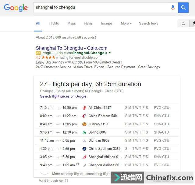 | 每天全球至少数以百万计的用户在运用 Google 搜索引擎,但只有一少部分人用尽了全球头号搜索引擎的所有潜能。在此,小编将为大家汇总了 Google 搜索引擎的 25 项隐藏技巧和窍门,帮助大家充分 Google 到更多相关信息和提升效率。 1. 搜索精确词句 – 搜索引擎都采用了分词技术,如果你要搜索一个精确词句,可以运用引号将内容引起来。 2.排除关键字 – 如果你的搜索的关键词有多种语义,可以通过连接符 – 排除某些不相关的内容,例如要排除 Win 10 下载相关的页面: 3. 搜索特定域名 – 你可以在关键字前运用 site: 指令加域名的方式来搜索特定网站的相关内容。 4. 搜索相似内容 – 要想找到与某个页面内容相似的页面,只需在 URL 地址前运用 related: 指令即可。 5. 搜索URL链接中的文本 – 要搜索 URL 链接中出现的文本关键字,可以运用 allintext: 指令,该方式不太适用于中文。 6. 只搜索标题中的关键词 – 与上一条相似,只搜索标题中的关键词可以运用 allintitle: 指令。 7. 搜索多个短语 – 如果想一次并列搜索多个短语,可以运用 OR 进行分隔。 8. 按文件类型搜索 – 如果你正在网上找特定文件,可以运用 filetype: 指定具体的文件类型,在结果中就只会出现你需要的格式。 9. 查找链接到另一网页的链接 – 运用 link: 指令可以查找链接到指定网页的其它页面,通常被 SEOer 用来查看反向链接。 10. 运用 Google 进行计算 – 包括 Google 在内,绝大多数搜索引擎都直接支持简单的公式运算。 11. 查看日出和日落时间 – 运用 sunrise 和 sunset 可以直接查看某地的日出和日落时间,例如我们来看看上海(不知道为啥成都不好使)。 12. 只需输入队名或比赛名称即可显示比分。 13. 运用 time + 地名即可获得当地准确时间。 14. 查看当前出口 IP 地址 15. 搜索航班时刻 16. Google 还能进行常见的单位转换 17. Google 同时也是一个倒数计时器 18. 当然,Google 也是天气预报员。 19. 搜索书箱、音乐自然也不在话下 20. 最后,输入 UPS 或 FedEx 等单号也可以直接在 Google 中跟踪到全国包裹的快递信息。 通过这 20 项隐藏技巧和窍门,相信可以帮助你有效提升 Google 的搜索和运用效率,让你可以尽快在浩瀚网络中找寻到需要的信息。 |