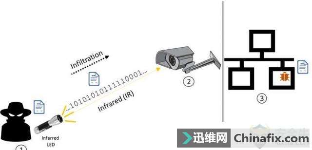 | 以色列研究团队开发了一款恶意软件,证明黑客可滥用带红外线(IR)功能的安全摄像头,从物理隔离的网络中收发数据。该研究由以色列本·古里安大学和沙蒙工程学院进行。其目的是展示安装在物理隔离网络中的恶意软件不仅仅能渗漏敏感数据,比如口令、PIN码和加密密钥,还可通过肉眼不可见的红外信号,从外部世界接收指令。 安全摄像头通常都装配有红外灯,以提供夜视能力。如果攻击者可在连接这些摄像头的网络中植入恶意软件,该恶意软件就能控制红外灯,将之用于数据传输。 专家将这款恶意软件称为“物理隔离红外跳线”(aIR-Jumper),可用多种方式编码被盗数据。比如说,如果运用开关键控(OOK),那么一定时长的红外信号缺失就代表比特“0”,相同时长的信号连续就编码为比特“1”。 编码口令、PIN码或加密密钥的1个字符需要8比特(1字节)。然而,若是出于数据传输目的,专家建议最好再加上前导码以标定特定参数(比如:LED位置和IR水平),并同步传输的开始,另加几个比特作为错误检测。 研究人员建议的另一种编码方式涉及频率改变。比如说,LED以一定频率点亮一定时长就代表比特“1”,以另一种频率点亮就代表比特“0”。同样的,灰度水平的改变,或者振幅键控(ASK),也是可以使用的编码方式。 数据传输速率取决于安全摄像头和用户捕获数据的摄像头(例如:GoPro、智能手机摄像头)。研究人员进行的实验,展示了数十米距离上可以20比特/秒的速率渗漏数据,但理论上也可以在数百米甚至数千米距离上以100比特/秒的速率渗透。 如果攻击者运用不止1个安全摄像头,那么数据传输速率还能显著提升。利用红外摄像头进行渗透和数据渗漏的视频已在网上公布。 通过人眼不可见的红外信号给恶意软件传送指令 安全摄像头通过人眼不可见的红外信号泄露敏感数据 \ 本·古里安大学的研究人员花费了很长时间找寻物理隔离网络数据渗漏方式。他们之前的工作涉及路由器LED、扫描仪、硬盘活动LED、USB设备、硬盘和风扇发出的噪音,还有散热等等。 |