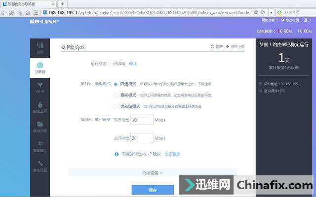 | 不知道大家在运用无线WiFi上网时,有没有遇到这种情况?明明家中的宽带速率已经升级到50M、100M的高速宽带了,可在家中进行上网活动时还会产生卡慢现象? 移动设备的快速崛起,颠覆了原来家中只有电脑可以上网的场景。智能手机、平板电脑、笔记本电脑等移动设备,已经成为上网的主力军。家中上网设备多起来后,每个人的运用需要不一,自然造成了“抢网速”的尴尬局面。 多台设备一上网就会造成拥堵 一般家中有运用手机刷社交网站的,有运用ipad观看在线高清视频的,有运用电脑进行网络游戏或者迅雷下载的……,这些上网行为同时进行时,对无线路由器是一个不小的考验。 由于没有优先级的设定,导致所有行为的数据都挤在“门口”,不会排队出发,所以导致家庭网络拥挤,让我们在实际运用中感觉网络非常“卡”。 家里多台设备上网活动 今天教给大家一个路由技能——"QOS智能限速"功能,即可完美搞定家庭"抢网速"的上网问题。 如何开启路由器智能限速功能? 接下来以必联智能路由器BL-F300为例,为大家一一讲解。 必联BL-F300智能路由器 PC端操作方式: 进入必联无线路由器的管理后台(192.168.199.1),找到“智能QoS”功能,它就是搞定网络拥挤的绝招。开启后,路由器会自动判断网络行为所需的带宽并进行自动分配,从而保障重要的网络行为数据优先转发。QoS还具备手动分配带宽模式,你可以给家中的每台上网设备手动设置上传和下载速度,控制带宽一手搞定。 电脑端智能限速 手机APP端操作方式: 打开“必联路由器”APP,点击【路由工具】—找到【智能限速】—开启后,手动设置上网设备的上传和下载速度,然后保存即可。 手机端智能限速 在手机APP端开启智能限速功能,就能够让路由器自动分配网络流量,保障每个接入用户的网络行为都流畅进行。 |