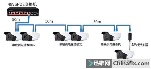 | 曾经安装监控拉线时,必须每一个摄像头要从交换机上面拉线,就是所谓的并列方式,然而当布线的部分摄像头是在一条直线上时,如果继续再重新成交换机上拉线的话即要更多的线,也要耗更多的时间在上面,然而当运用串联网络监控摄像头时,可以不需要了,直接从摄像头上面拉根网线到另外一个上面就行,因为这摄像头有两个网络接口,一进一出,而且可以POE供电,如果接POE录像机或者POE交换机的话电线也是可以省的。 下面来看看传统的并联和最新的串联有何分别。 传统的POE并联布设 上图为传统的串联布设方式,我们可以看到每一个摄像头都必须从交换机上面拉线。 串联POE网络监控布设 这是串联式布设。 大家可以根据情况选择方案 下面我们再来看看串联式网络监控后面有哪些线 串联式网络监控背面 最新的串联网络监控可能会为你搞定更多的布线问题,不管你运用何种方式,简单省钱就是好方式。 |