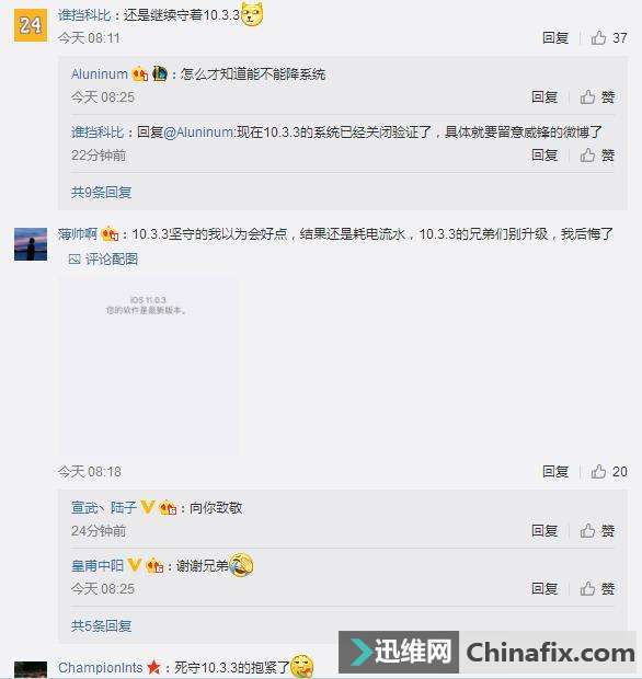 | 自从2017年9月20日凌晨1点苹果公司正式公布苹果iOS 11手机操作系统之后,从数码圈媒体到全球果粉可谓是怨声载道,原因在于苹果iOS 11系统引发了诸多问题,比如手机电池续航下降、运行卡慢、通话噪音、无3D Touch手势多任务功能等等。 虽然此后苹果及时进行了系统更新,但除了在苹果iOS11.0.2中修复了iPhone 8和iPhone 8 Plus通话时,听筒出现噼噼啪啪电流声的问题,其他问题并未得到妥善搞定。 今天早上,苹果再次推出了修复版本苹果iOS11.03,苹果用户可以通过系统设置进行更新,该版本的主要目目的依旧是Bug修复,主要针对音频和触感反馈在部分iPhone 7和iPhone 7 Plus设备上无法正常工作的问题,同时搞定了部分iPhone 6S显示屏由于维修时运用非原厂苹果部件而导致触摸输入无响应的问题。 不过令人失望的是该版本仍未修复手机电池续航下降、运行卡慢等问题,而果粉期盼许久的3D Touch手势多任务功能也同样未能正式回归,这一功能最快回归也得等到iPhone X正式开售以后,也就是11月3日的苹果iOS11.1.1版本。 对于这些简单的修修补补,果粉们显然并不满意,网友纷纷喊话苹果:死守10.3.3!哪个版本电池续航好?确定了我再升级!也有网友表示:掉电速度丧心病狂,不手持20000MAH充电宝根本不敢出门……可见苹果iOS11的电池续航能力真是让果粉们操碎了心…… 话说回来,你们准备好再次升级了吗?还是继续等待苹果修复电池续航版本呢? |