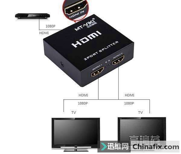 | 家里有两台以上电视的用户越来越多(例如客厅卧室各收到其他维修同行的一台)。那么如何实现一个IPTV机顶盒同时连接两台电视机呢?接下来我们就为大家讲解一下如何通过分频的方式连接两台电视。 【方式一】 AV接口俗称“有线电视接口”,通常由红白黄三个接口组成(红白接口为左右声道音频接口,而黄色接口则为视频接口),也称之为“复合接口”。基本上是每台电视的必备接口,现在一般的液晶电视也具有此接口。 用户可以购买AV分频器,只需要通过IPTV机顶盒的视频输出线连接AV分频器,再从AV分频器输出两条AV线连接两台电视即可。注:AV接口输入的方式会造成色彩信号的一定损失,影响图像质量,最高仅能达到DVD效果,所以此类方式适用于老式电视。 【方式二】 进入高清时代,HDMI接口基本是每台智能电视机的必备接口,通常情况下电视都会配备2-4个HDMI接口。HDMI采用全数字传输,能够传输过程中保持良好的无损信号,而且将音频、视频所有集合,远优于AV接口。 我们同样可以通过HDMI高清分频器来连接两台电视,与“方式一”相同。通过IPTV机顶盒的视频输出线连接HDMI分频器,再从HDMI分频器输出两条HDMI线连接两台电视。 注:由于仅有一个IPTV机顶盒为视频输入源,所以连接的两台电视只能同时观看同一个节目频道。 |