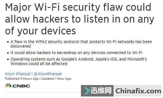 | 10月17日消息,无线WiFi被曝光存在重大安全漏洞。该漏洞名为“KRACK”,也就是“Key Reinstallation Attack(密钥重安装攻击)的缩写”,它是基于WPA2保密协议,所以涉及范围非常广,几乎影响所有计算机、手机和路由器等Wi-Fi设备,使黑客可以监听到通过接入无线WiFi网络设备进行的数据通信,窃取用户隐私。 据研究机构周一发表的研究报告,用于保护无线WiFi网络安全的保护机制(也就是WPA2安全加密协议)已被黑客攻破,WPA2是一种安全加密协议,可以防止无线路由器和联网设备被黑客入侵,是一种广泛使用的网络传播过程中的安全防护机制。值得注意的是,WPA2加密协议几乎是所有路由的默认安全加密手段。 利用这些漏洞的影响包括解密、数据包重播、TCP连接劫持、HTTP内容注入等。 换句话来说,只要你的设备连上了无线WiFi,那都有可能被攻击!很多用户在微博微信上向小编求助,这件事情会不会影响到运用必联路由的用户?想起来就好怕怕... 根据安全专业人士解释,KRACK漏洞不能用于pojie运用WAP2个人版加密(即:WPA2-PSK),只是会影响在运用WPA2认证的无线网络下对应连接的无线终端(如手机、智能设备等),因此造成该漏洞的关键环节就出现在无线协议的WPA2认证过程中(即:WPA2,后面无“-PSK”的认证协议):这项KRACK漏洞是发生在WPA2认证过程,和路由器以及WI-FI本身无关;只要路由器不采用WPA2加密,就影响不到,应对处理方式有: 1、将路由器的WIFI加密改为WPA2-PSK(不要用WPA2或WPA加密,但国内家用路由器都是默认WPA2-PSK加密) 2、卸载掉所有无线终端(如手机、智能设备等)上的“WIFIwan能yao匙”; 3、若依不放心,则将电脑、手机等打上补丁;(非必要,可以不必理会)。 |