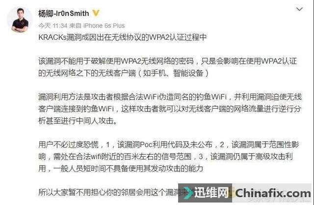 | 近日,有计算机安全专业人士发现了 无线WiFi 设备的安全协议存在漏洞。这种漏洞能够影响到许多操作系统和设备,其中就包含了安卓、Linux、Apple、Win、OpenBSD、MediaTek 和 Linksys 等系统。 无线WiFi安全漏洞 恐怖的是,无论你在家还是在公众场合,只要连接 无线WiFi ,都有可能会被黑客入侵。 一旦被攻击用户的信用卡号码和密码、讯息、电邮及照片等不再保密。黑客甚至可以将勒索软件和其它恶意软件插入到用户浏览的网站中。 漏洞名叫“KRACK”,也就是“Key Reinstallation Attack”(密钥重安装攻击)的缩写,它曝露了WPA2 的一个基本漏洞(运用范围最广的 Wi-Fi 网络保护协议)。攻击者会重复运用客户端设备加入 Wi-Fi 网络时提供的一次性密钥,通过这种方式pojie接入点与客户端设备之间交换的信息。 何为 WPA2? WPA,全称为 Wi-Fi Protected Access(保护无线电脑网络安全系统),有 WPA 和 WPA2 两个标准,是一种保护无线网络安全的加密协议。而 WPA2 是基于 WPA 的一种新的加密方式,支持 AES 加密,新型的网卡、AP 都支持 WPA2 加密,但现在已经被黑客pojie。攻击者如今可读取通过 WAP2 保护的任何无线网络(诸如路由器)的所有信息。 攻击原理 范霍夫在网站上描述了攻击流程:当收到其他维修同行的一台设备加入一个受保护的Wi-Fi网络时,一个名为四向握手的流程便会发生。这种“握手”会确保客户端与接入点都能拥有正确的登录信息,并生成一个新的加密密钥来保护网络流量。 这个加密密钥会在四向握手的第三步安装,但如果接入点认为消息遗失,有时会重复发送相同的密钥。范霍夫的研究发现,攻击者其实可以迫使接入点安装相同的加密密钥,这样一来,入侵者便可借此攻击加密协议,并pojie数据。 根据 WPA2 协议运用程度的不一样,不一样的设备和操作系统受到的影响程度也将不一样。安卓6.0 和 Linux 系统遭受的最严重攻击或将导致加密密匙被重写,与此同时,苹果iOS 和 Win 系统具有一定的安全性,因为它们并不会完全依赖于 WPA2 协议,因此会避开这一漏洞。但是专业人士认为没有设备和系统能够完全不受漏洞的影响。 如何避免被攻击 现在,任何运用 Wi-Fi 的设备都有可能面临这一安全风险。变更 Wi-Fi 网络的密码也不能避免。为避免受 KRACK 攻击,建议及时更新无线路由器、手机,智能硬件等所有运用WPA2无线认证客户端的软件版本。(有补丁的前提下) 微博认证为360无线电安全研究部总监的杨卿发布博文称:普通用户不必过于惊慌,一来,该漏洞 Poc 代码未公布;二来,这次的攻击行为不是远程发起的,需要黑客在目标无线网络范围内才能进行;三来,一般人短时间内不具备运用发动攻击的能力。 不过,在漏洞尚未修复之前,对于普通手机用户来说,运用支付宝、微信支付、网银等安全交易的时候,建议大家还是尽量运用蜂窝移动网络。 |