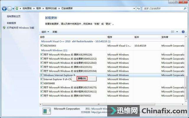 | IE是我们装完系统第一个使用到的浏览器,不过因为它的一些功能没有现在很多浏览器方便,因此有用户就想要卸载它,那么怎么卸载ie浏览器呢?其实方法很简单,如果你不知道的话,那就赶紧来看看,Win7怎么卸载ie浏览器教程吧! Win7系统怎么卸载ie浏览器? 图1 一、停用IE浏览器 1、找到开始菜单—然后找到控制面板,打开如下图: Win7系统怎么卸载ie浏览器? 图2 2、打开控制面板菜单,找到“程序”,如下图所示: Win7系统怎么卸载ie浏览器? 图3 3、点击“卸载程序”—打开或关闭Windows功能,找到Internet Explore9。 4、去掉Internet Explore9浏览器前面的钩,点击确定即可。就关闭IE浏览器服务了。 二、卸载IE浏览器 1、上述方法只是暂时关闭IE浏览器,如果需要的时候,只需要再次点击安装开启即可。 2、卸载方法很简单,操作步骤,在上述窗口找到“查看已经安装的程序” 或者在开始—输入appwiz.cpl命令即可如下图: 3、找到Windows Internet Explorer程序,如果没有点击“查看已经安装的更新”,如下图: 4、找到跟IE相关的安装包Windows Internet Explorer程序,如下图: 5、右键选择“卸载”,然后点击确定即可进行卸载,如下图: 注意事项: 1、在卸载IE浏览器之前,请先确保服务器上还有其他非IE内核的浏览器(如:火狐浏览器)避免由于卸载浏览器之后导致不能上网。 2、有的网站必须在IE内核的浏览器下面才能加载,建议保留IE浏览器。可以设置自己喜欢的浏览器为默认的浏览器即可。 以上就是Win7怎么卸载ie浏览器的教程了,方法很简单,我们只需要先关闭IE浏览器的服务,之后再去卸载它的更新即可。 |