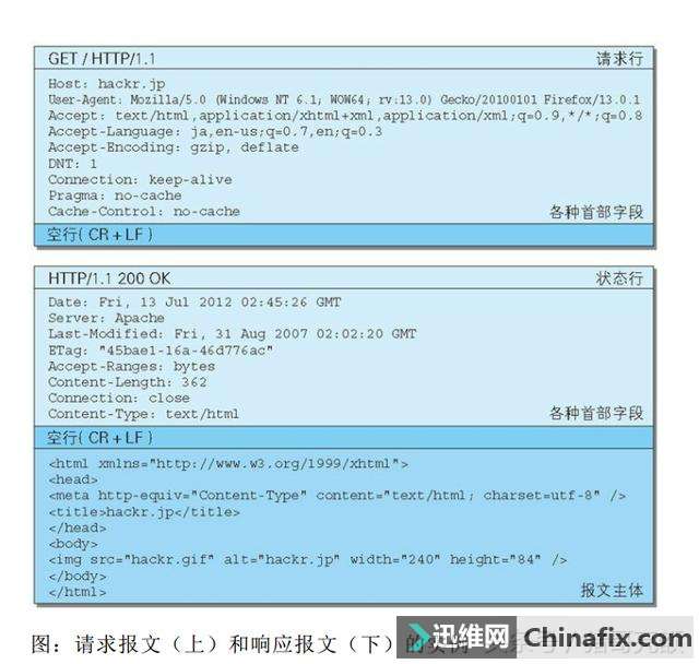| HTTP 报文内的 HTTP 信息HTTP 通信过程包括从客户端发往服务器端的请求及从服务器端返回客户端的响应。 本章就让我们来了解一下请求和响应是怎样运作的。 HTTP 报文用于 HTTP 协议交互的信息被称为 HTTP 报文。 请求端(客户端) 的 HTTP 报文叫做请求报文, 响应端(服务器端) 的叫做响应报文。HTTP报文本身是由多行(用 CR+LF 作换行符) 数据构成的字符串文本。HTTP 报文大致可分为报文首部和报文主体两块。 两者由最初出现的空行(CR+LF) 来划分。 通常, 并不一定要有报文主体。 HTTP协议是什么 图1 请求报文及响应报文的结构。 HTTP协议是什么 图2 HTTP协议是什么 图3请求行 : 包含用于请求的方式, 请求 URI 和 HTTP 版本。状态行 : 包含表明响应结果的状态码, 原因短语和 HTTP 版本。首部字段 : 包含表示请求和响应的各种条件和属性的各类首部。一般有 4 种首部, 分别是: 通用首部、 请求首部、 响应首部和实体首部。其他 : 可能包含 HTTP 的 RFC 里未定义的首部(Cookie 等)。 编码提升传输速率。 HTTP 在传输数据时可以按照数据原貌直接传输, 但也可以在传输过程中通过编码提升传输速率。 通过在传输时编码, 能有效地处理大量的访问请求。 但是, 编码的操作需要计算机来完成, 因此会消耗更多的 处理器 等资源。报文主体和实体主体的不一样。报文(message) : 是 HTTP 通信中的基本单位, 由 8 位组字节流(octet sequence,其中 octet 为 8 个比特) 组成, 通过 HTTP 通信传输。实体(entity) : 作为请求或响应的有效载荷数据(补充项) 被传输, 其内容由实体首部和实体主体组成。HTTP 报文的主体用于传输请求或响应的实体主体。通常, 报文主体等于实体主体。 只有当传输中进行编码操作时, 实体主体的内容发生变化, 才导致它和报文主体产生不一样。向待发送邮件内增加附件时, 为了使邮件容量变小, 我们会先用 ZIP 压缩文件之后再添加附件发送。 HTTP 协议中有一种被称为内容编码的功能也能进行相似的操作。内容编码指明使用在实体内容上的编码格式, 并保持实体信息原样压缩。 内容编码后的实体由客户端接收并负责解码。 HTTP协议是什么 图4常用的内容编码有以下几种:gzip(GNU zip)compress(UNIX 系统的标准压缩)deflate(zlib)identity(不进行编码)在 HTTP 通信过程中, 请求的编码实体资源尚未所有传输完成之前,浏览器无法显示请求页面。 在传输大容量数据时, 通过把数据分割成多块, 能够让浏览器逐步显示页面。这种把实体主体分块的功能称为分块传输编码(Chunked Transfer Coding)。 HTTP协议是什么 图5 分块传输编码会将实体主体分成多个部分(块) 。 每一块都会用十六进制来标记块的大小, 而实体主体的最后一块会运用 “0(CR+LF)” 来标记。运用分块传输编码的实体主体会由接收的客户端负责解码, 恢复到编码前的实体主体。HTTP/1.1 中存在一种称为传输编码(Transfer Coding) 的机制, 它可以在通信时按某种编码方式传输, 但只定义作用于分块传输编码中。 发送多种数据的多部分对象集合。 HTTP协议是什么 图6发送邮件时, 我们可以在邮件里写入文字并添加多份附件。 这是因为采用了 MIME(Multipurpose Internet Mail Extensions, 多用途因特网邮件扩展) 机制, 它允许邮件处理文本、 图片、 视频等多个不一样类型的53数据。 例如, 图片等二进制数据以 ASCII 码字符串编码的方式指明,就是利用 MIME 来描述标记数据类型。 而在 MIME 扩展中会运用一种称为多部分对象集合(Multipart) 的方式, 来容纳多份不一样类型的数据。相应地, HTTP 协议中也采纳了多部分对象集合, 发送的一份报文主体内可含有多类型实体。 通常是在图片或文本文件等上传时运用。多部分对象集合包含的对象如下: HTTP协议是什么 图7multipart/byteranges :multipart/form-data : 在 Web 表单文件上传时运用。multipart/byteranges : 状态码 206(Partial Content, 部分内容) 响应报文包含了多个范围的内容时运用。multipart/form-data :在 HTTP 报文中运用多部分对象集合时, 需要在首部字段里加上 Content-type。 有关这个首部字段, 我们稍后讲解。运用 boundary 字符串来划分多部分对象集合指明的各类实体。 在 boundary 字符串指定的各个实体的起始行之前插入“--”标记(例如: --AaB03x、 --THIS_STRING_SEPARATES) , 而在多部分对象集合对应的字符串的最后插入“--”标记(例如: --AaB03x--、 --THIS_STRING_SEPARATES--) 作为结束。多部分对象集合的每个部分类型中, 都可以含有首部字段。 另外, 可以在某个部分中嵌套运用多部分对象集合。 获得部分内容的范围请求。以前, 用户不能运用现在这种高速的带宽访问互联网, 当时, 下载一个尺寸稍大的图片或文件就已经很吃力了。 如果下载过程中遇到网络中断的情况, 那就必须重头开始。 为了搞定上述问题, 需要一种可恢复的机制。 所谓恢复是指能从之前下载中断处恢复下载。要实现该功能需要指定下载的实体范围。 像这样, 指定范围发送的请求叫做范围请求(Range Request) 。对一份 10000 字节大小的资源, 如果运用范围请求, 可以只请求 5001~10000 字节内的资源。 HTTP协议是什么 图8执行范围请求时, 会用到首部字段 Range 来指定资源的 byte 范围。byte 范围的指定形式如下:5001~10 000 字节 : Range: bytes=5001-10000。从 5001 字节之后所有的 : Range: bytes=5001。从一开始到 3000 字节和 5000~7000 字节的多重范围 : Range: bytes=-3000, 5000-7000。针对范围