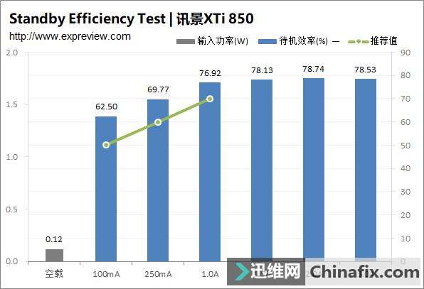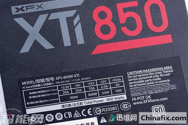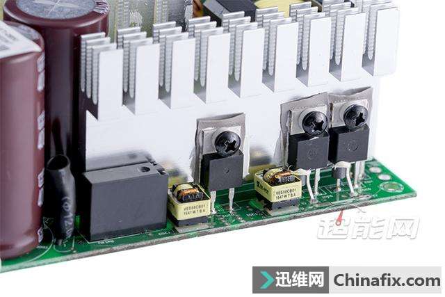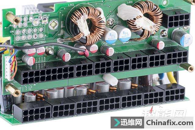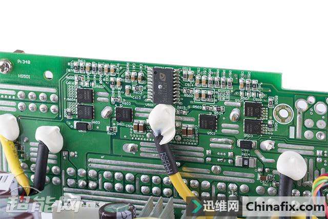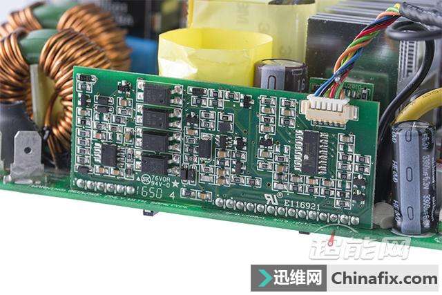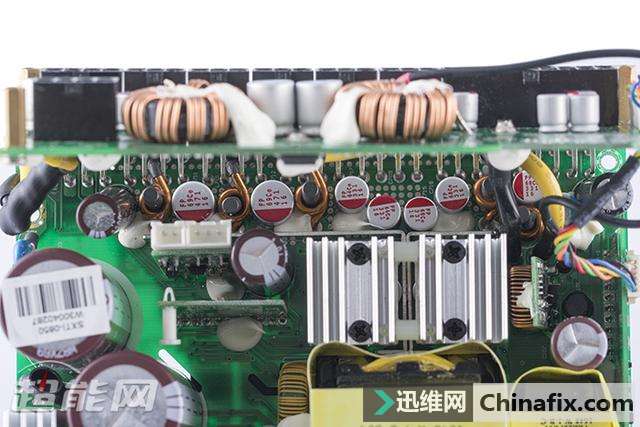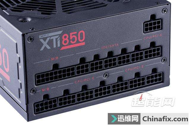 | 对于讯景,相信很多玩家的第一时间想到的都是他们家的显卡,但实际上他们家的PC电源也同样非常优秀。如今讯景旗下的电源产品已经全面采用海韵代工生产,而且所有型号均经过讯景和海韵方面的精挑细选,因此在品质上完全是一流水准。今天我们给大家介绍的就是讯景最新的旗舰级电源XTi 850,这款源自于海韵Prime系列的电源对于发烧级玩家来说可是一个非常好的选择。 现在讯景旗下的电源产品都由海韵进行代工,我们可以在海韵的现有产品中找到相应的原型。讯景XTi 850电源基于海韵Prime系列打造,同样采用主动式PFC+全桥LLC谐振+同步整流+DC to DC规划,额定功率为850W,采用全模组线材规划,通过了80Plus钛金认证,尺寸为170*150*86mm,属于加长型ATX电源,可享受10年质保服务。 讯景XTi 850电源黑色为主色调,左右两侧留有下凹的造型,外观上颇具动感,交流输出端则留有大量的蜂窝型开孔,用于增强电源内部的散热效能。 讯景XTi 850电源采用单路+12V输出规划,额定功率为850W,其中+12V输出最高可达70A/840W;+5V与+3.3V最高均可达到20A电流的水平,两路联合输出则为最高100W功率;+5V待机则可输出3A的电流,相当于15W功率,以适配日益增长的USB接口供电需要。 讯景XTi 850电源采用13.5cm尺寸静音散热风扇,支持Hybrid Fan温控模式,可实现温度与散热效果之间最佳的平衡。 讯景XTi 850电源采用全模组接口规划 讯景XTi 850电源输入端配置有独立开关,Hybrid Fan模式开关也布置在同一侧 讯景XTi 850电源采用全模组线材规划,标配的模组线材共有14根,可提供1个24pin主供电接口、1个4+4pin 处理器供电接口、1个8pin 处理器供电接口、8个6+2pin PCI-E供电接口、10个SATA供电接口和6个D型4pin供电接口 ,除了24pin主供电接口采用编织网包线外,其余模组线均采用扁平线规划。 讯景XTi 850电源包装盒 讯景XTi 850电源拆解赏析 讯景XTi 850电源采用的是来自鸿华的13525型风扇,型号HA13525M12F-Z,12V/0.36A,最高转速1800RPM,属于FDB液态轴承风扇,在噪音控制上会有不错的表现。 讯景XTi 850电源采用主动式PFC+全桥谐振+同步整流+DC to DC架构,全日系电容规划,用料充足且做工扎实,内部的绝缘保护以及EMI防护都做得很到位。 电源的+12V同步整流MosFET布置在PCB背面,另有两颗Si8230BD用于全桥谐振的控制 电源在AC输入插座后方设置有EMI电路,并且加上了金属屏蔽罩,不过由于屏蔽罩的原因我们无法确定里面的具体用料,只能从缝隙位置看到其至少拥有2个X电容,保险管也是安装在屏蔽罩里面。 而在主PCB上的EMI器件则共计有2个共模电感、1个X电容与2对Y电容,保护器件上可以看到有MOV和NTC,其中NTC位于两个主电容的旁边,配置有独立的继电器。 讯景XTi 850电源采用全桥谐振架构打造,2个整流桥共用1个散热片, 不过表面看不到有型号标注,未能确定具体规格,但根据海韵Prime系列产品的用料推断,在余量上肯定是充足的。 讯景XTi 850电源的2枚PFC管是英飞凌IPP50R140CP,规格为550V/15A@100℃/0.140Ω,PFC二极管则是C3D10060碳化硅肖特基二极管 ,规格为600V/14A。两部分的管子都运用了独立的驱动变压器,可以有效减少损耗。 全桥谐振的四枚主开关管则为英飞凌IPP50R140CP,规格为550V/15A@100℃/0.140Ω,共用1块铝制散热片。 主变压器、谐振电感、谐振变压器和待机变压器 电源的主电容是来自日化的两枚KMR系列电解电容,规格均为470μF/400V/105℃,两颗并联等效940μF,容量充足。 +12V同步整流电路的散热片 输出滤波 部分使用了大量的FP固态电容 讯景XTi 850电源的+12V同步整流电路布置在主PCB底部,配置有4颗MosFET,但由于表面不清楚的原因,我们未能观察到其具体型号。 讯景XTi 850电源虽然在架构上与海韵Prime系列相同,但是在具体结构上两者还是有些不一样的,而这些不一样主要集中在DC to DC电路以及模组接口PCB上。海韵Prime系列采用的是两者分离的做法,而讯景XTi 850电源则将DC to DC电路与模组接口PCB整合到一起。两路DC to DC输出各配置有三颗MosFET,均为英飞凌BSC0906NS,30V/63A/4.5mΩ的规格。 管控IC为Weltrend WT7257V DC to DC电路的储能线圈位于模组接口PCB的正面,值得一提的是,与海韵Prime系列模组接口PCB直插主PCB的做法不一样,讯景XTi 850电源的模组接口分为两部分,下方的接口直接焊接在电源的主PCB上,而上方的接口则与DC to DC电路整合到一块PCB上,在通过导线与电源主PCB连接。 讯景XTi 850电源测验 每一个测验项目的设置参数以及意义可以参考我们的文章《如何看懂电源测评,超能网电源测评体系介绍》。 均衡负载测验数据汇总 转换效率 讯景XTi 850是一款通过了80Plus钛金认证的电源,在230V输出的环境下,输出50W功率时其转换效率已经达到82%,后半程的输出效率最高可超过95%,整体平均效率维持在94%以上左右,符合80Plus钛金电源的运行特点。 待机效率 按Intel ATX12V 2.31规范中的推荐值,5Vsb在100mA/250mA/1A的负载下转换效率应该高于50%、60%、70%,待机空载小于1W。从我们v1.01版本测验体系开始增加了2档待机电流测验,以适应对5Vsb日渐增长的需要。 5Vsb功耗及效率 5Vsb实际输出电压 散热风扇转速 在风扇转速与噪音控制方面,讯景XTi 850电源支持常规温控调速模式以及Hybird Fan低温低负载风扇停转模式,后者在输出功率达到500W之前,其风扇 基本是停止转动的,只是输出超过500W后风扇才开始转动,起转时转速仅在500RPM左右,随后开始随着负载的提升而提升,满载时转速也只是550RPM左右,整体运转 非常安