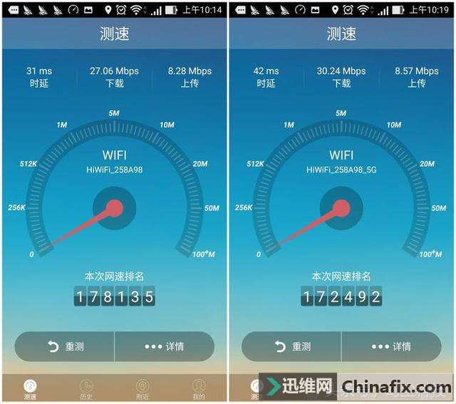 | 家中的房子比较大,所以对路由器的要求也相对比较高一些。之前用过不少路由器,给我的感觉,都不尽人意。腾达AC10 1200M无线路由器在我所用的路由器中,不能算最好,但也不算最差。下面就与之前运用的极路由3做一下对比。 无线WiFi性能测验及其对比 A:产品个观对比 我现在运用的是极路由3无线路由器,正好用来跟腾达AC10 1200M无线路由器作一下对比。从外观来看,二款产品各有所长。腾达AC10是塑料外壳,可塑性强,外观比较有特色,四天线。极路由3是金属外壳,显得更加高档,三天线。 二款路由器侧面对比。 在接口方面,极路由3的功能更丰富一些,有TF卡插槽,USB接口。如果腾达AC10能配上USB接口,就好了。此外在WAN与LAN接口方面,极路由3的质量也更好一些,但是LAN接口只有二个,很是鸡肋。腾达AC10的LAN接口虽然只有三个,但也比二个强。 先介绍一下测验环境,我现在住的房子是三层楼房,小县城的房子价格不贵,估计也就是上海一个洗手间的价格,不要太过惊讶。南方很多农村,人家也都住得是别墅。房子一共有三层,面积还算可以,将近三百平米。这房子是以前农行盖的,是用来做办公用的,所以不是家居风格,看到上面的房层结构也不要觉得怪异。路由器是放置在二楼中间房间里的,为了作对比,二台都是放置在一块的。 B:无线WiFi效果测验2.4G与5G(手机类) 用来做测验的手机是华硕的一款产品,支持2.4G与5G二种模式。 腾达AC10 1200M无线路由器2.4G与5G的测速。 极路由3无线路由器2.4G与5G的测速。可以显著看到,腾达AC10不论是在2.4G,还是5G都要比极路由3强上不少。尤其是5G,下载速度将近快了一倍。 下面测验二款路由器的无线WiFi强度,以及覆盖范围: 看一下测验点1的效果,腾达AC10路由器2.4G为-40dBm,5G为-44dBm;极路由3路由器2.4G为-42dBm,5G为-42dBm; 测验点2的效果,腾达AC10路由器2.4G为-20dBm,5G为-15dBm;极路由3路由器2.4G为-20dBm,5G为-28dBm; 测验点3的效果,腾达AC10路由器2.4G为-44dBm,5G为-53dBm;极路由3路由器2.4G为-44dBm,5G为-52dBm; 测验点4的效果,腾达AC10路由器2.4G为-54dBm,5G为-70dBm;极路由3路由器2.4G为-45dBm,5G为-69dBm; 测验点5的效果,腾达AC10路由器2.4G为-45dBm,5G为-50dBm;极路由3路由器2.4G为-41dBm,5G为-56dBm; 测验点6的效果,腾达AC10路由器2.4G为-62dBm,5G为-63dBm;极路由3路由器2.4G为-54dBm,5G为-61dBm; 测验点7的效果,腾达AC10路由器2.4G为-44dBm,5G为-53dBm;极路由3路由器2.4G为-46dBm,5G为-51dBm; 通过测验可以看出,二款路由器的无线信号都可以覆盖三楼层,信号强度方面,各有所长,其中5G的效果都不如2.4G的,总得来说,在5G效果方面,极路由3更胜一筹。 |