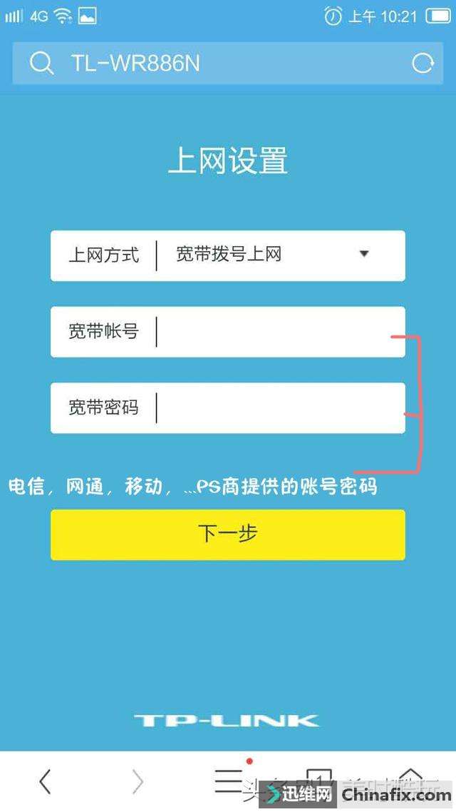 | 现在的家里可以没有电脑,但不能没有WIFI。因为手机必须运用无线上网!但如果没有电脑,需要设置路由器时如何维修,只能用手机。现在厂家已经在说明书上增加了手机设置的方式,但说明书说的还是有些简单。手机如何设置无线路由器呢?今天我们详细讲一下用手机设置TP路由(TL-WR886N)的方法和注意事项: 手机如何设置无线路由器 图1 首先是连接方式,上图显示的是具体方式,用手机设置可以不考虑电脑了。在这里有一个特别注意的地方,接好线后光猫不要接通电源,光猫不要接通电源,光猫不要接通电源,重要的事说三遍只要路由 接通电源就可以有手机设置了,为什么光猫不接通电源一会告诉你! 下面拿出我们的手机进入到WLAN 选项 ,扫描,发现有一个信号是TP…信号是开放的。 手机如何设置无线路由器 图2 点它连接上这个信号,然后退出这个界面,打开手机的上网浏览器,在浏览器里输入:192.168.1.1的Ip地址,注意:如果前面把光猫通上电后,好多情况下,输入这个IP地址很容易就进入到光猫的设置界面或者跟本就进不到设置界面,所以我重复三遍的说不能给光猫通电! 手机如何设置无线路由器 图3 点进入,就进到了这个界面: 手机如何设置无线路由器 图4 设置路由器的登录密码,注意:这可不是无线WiFi密码,好多人以为WIFI 密码。设置密码后进入下面的界面 : 手机如何设置无线路由器 图5 点“跳过WAN口检测”进入下面: 手机如何设置无线路由器 图6 把网通或者电信等PS商提供的账号密码写进去,注意一个标点符号都不要错,错一个字都上不了网。点下一步进入下面的界面: 手机如何设置无线路由器 图7 这时候才是设置无线WiFi密码的时候,尽量的设置复杂点(字母+数字+符号),设置好后点确定,退出。然后再回到文章开头的第一项把光猫通上电,等2分钟 :重新扫描WIFI,找到这个路由器的信号连接输入WIFI密码就可以了上网了。 |