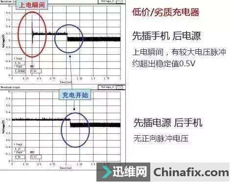 | 你的手机一般待机多长时间呢?一天?半天?还是还没怎么玩就没电了?在玩手机的时候忽然电量不够其实是件很烦恼很尴尬的事情,为了避免这种尴尬,一般出门的时候都会带上数据线,做好随时充电的准备。那么手机如何正确充电呢?手机充电先插手机还是先插电源呢? 手机如何正确充电 图1 其实这里面的学问还不少噢,做错的话还很容易破坏手机,还会使手机的寿命缩短,因此一定要认真地看看,在了解这个之前,我们先来了解另外一个概念:电涌。 电涌是指超出正常工作电压的瞬间电压,也称瞬间脉冲电压,它是电路中出现的一种短暂电流,连续百万分之一秒的一种剧烈的波动。我们的电器接触插线板时出现的火花,就是电涌,因此市面上出现了一大批的抗电涌插线板。 手机如何正确充电 图2▲抗电涌插座在电涌冲击一瞬间的波形图 如果充电的时候火花大说明电压脉冲大,对手机危害大,所以平时接触插线板如果出现大量火花的话,还是去换一个扛电涌的吧...... 手机如何正确充电 图3 因为如果是用这种排插来充电,无论先插电源还是先插手机,对手机都没有什么影响,所以也不用纠结家电维修小编给大家分享这篇文章所探讨的问题了...... 手机如何正确充电 图4▲普通插座在电涌冲击一瞬间的波形图 好了,说会主要的问题,普通插线板在电涌一瞬间,电压冲破屏幕达到顶峰!如果超出电器的承受范围,那么损害是致命的!关于手机充电先插手机还是先插电源?如果你运用的是普通插线板,那就要看你的充电器是原装还是非原装的。 手机如何正确充电 图5 用原装充电器时,不论先插手机或是先插电源,几乎没有电压脉冲,也就是说基本不受影响,随便你怎么插。 手机如何正确充电 图6 用不知名充电器测验结果就有点不太一样了,先插手机时在通电瞬间,会产生比较大的电压脉冲,且超出了稳定值,也就是说瞬间产生较大电涌,这可能随时会给手机带来危害。 所以最后结论是:如果用的是非原装充电器,充电时应该先插电源再插手机。 手机如何正确充电 图7 同样的逻辑,手机充满电后,也要记得先拔掉手机 因为在拔充电器的瞬间,充电器容易产生反向瞬间电流,此时如果先不拔手机,也可能伤害到手机。 |
